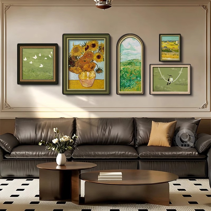 梵高莫奈客厅装饰画美式复古沙发背景墙挂画世界名画法式组合壁画