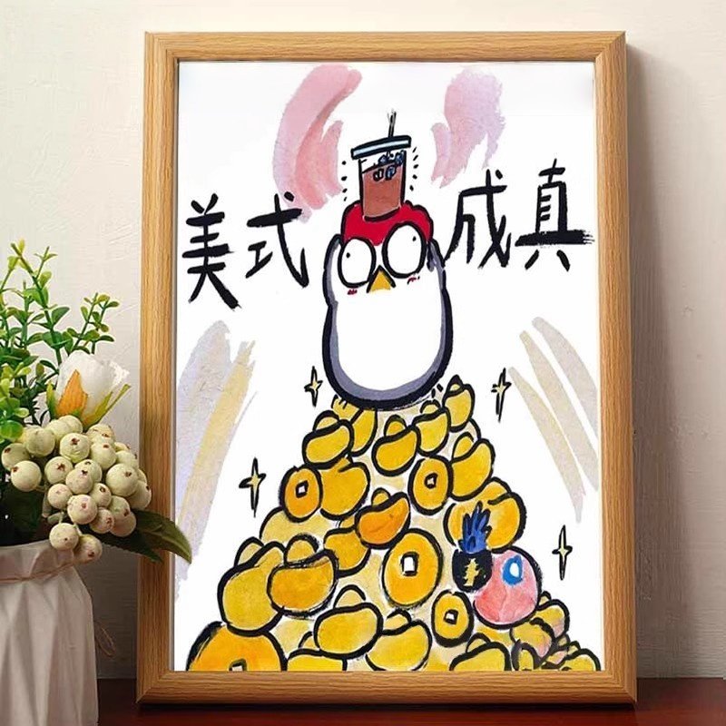 美事成真搞笑画风美式字画相框摆台咖啡店厅挂画墙面装饰桌面摆件