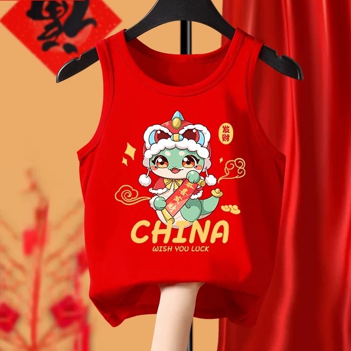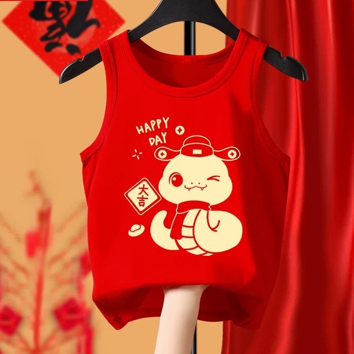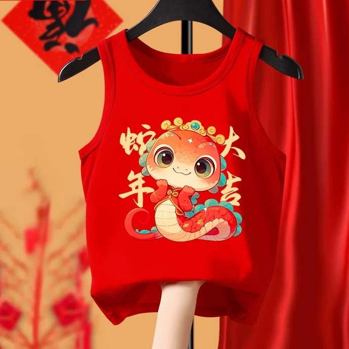 儿童背心纯棉2025新年冬季红色男童女童蛇年内穿本命年过年衣服