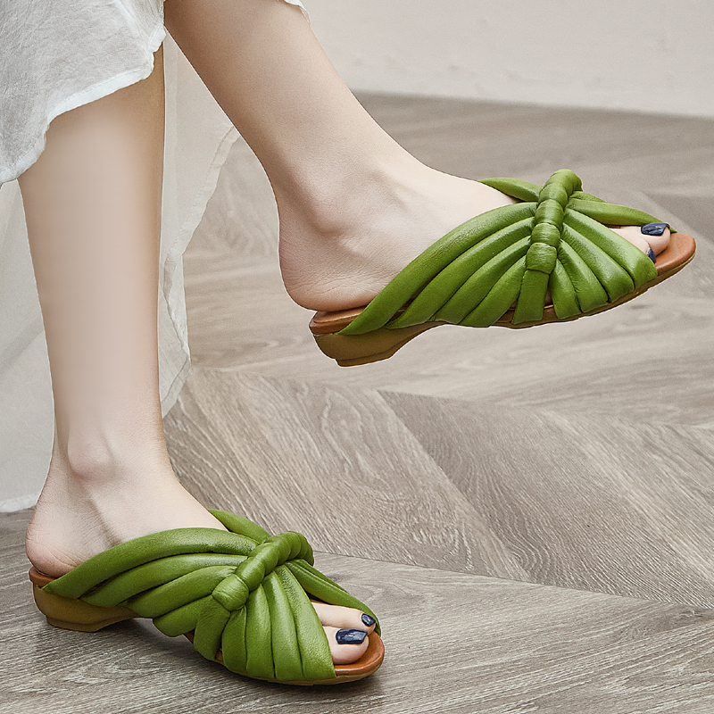 平底凉鞋拖精致鱼嘴女士拖鞋2025新款夏季手工编织妈妈一字拖外穿
