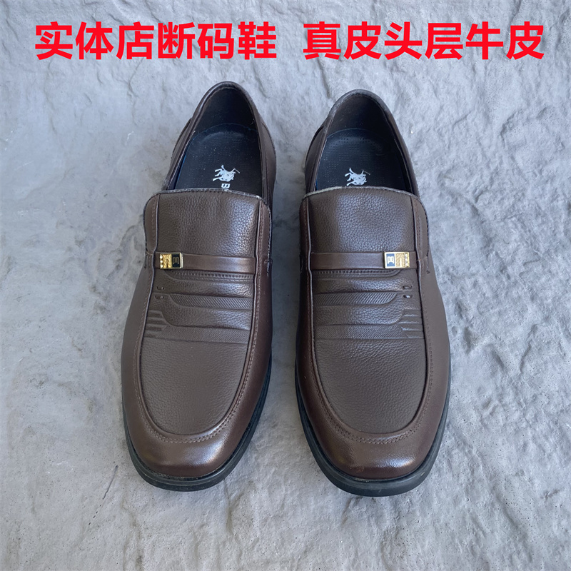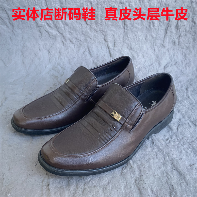 撤柜男鞋真皮头层牛皮瑕疵鞋断码捡漏中老年爸爸鞋商务上班德比鞋
