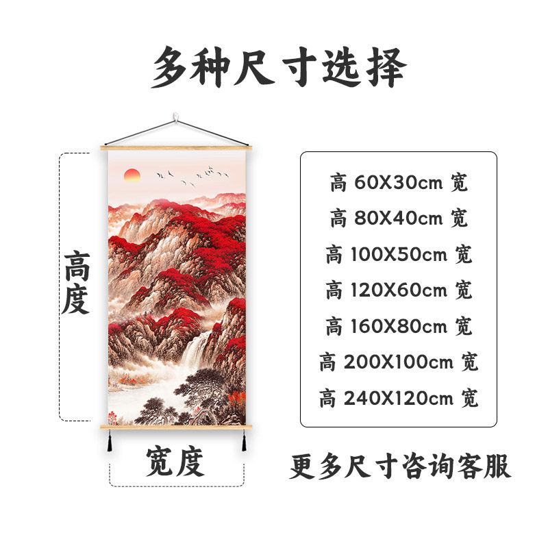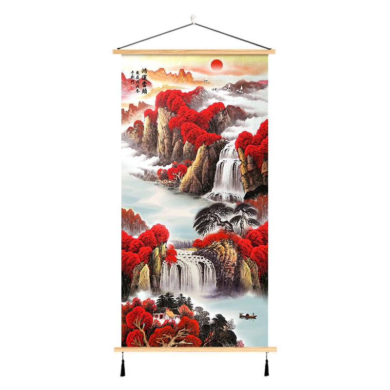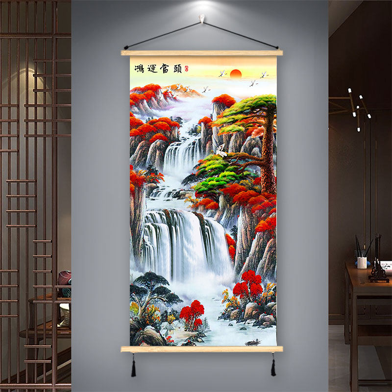 鸿运当头入门实木挂画新中式玄关装饰画竖版山水画客厅办公室壁画