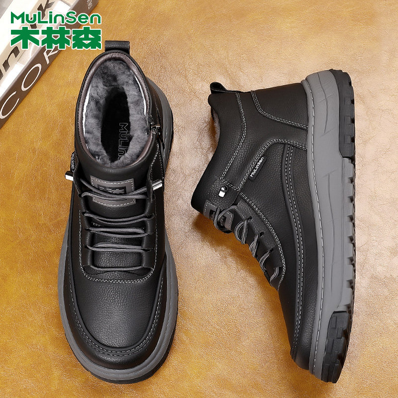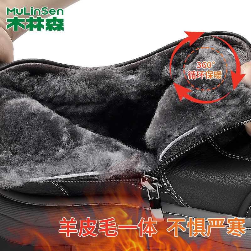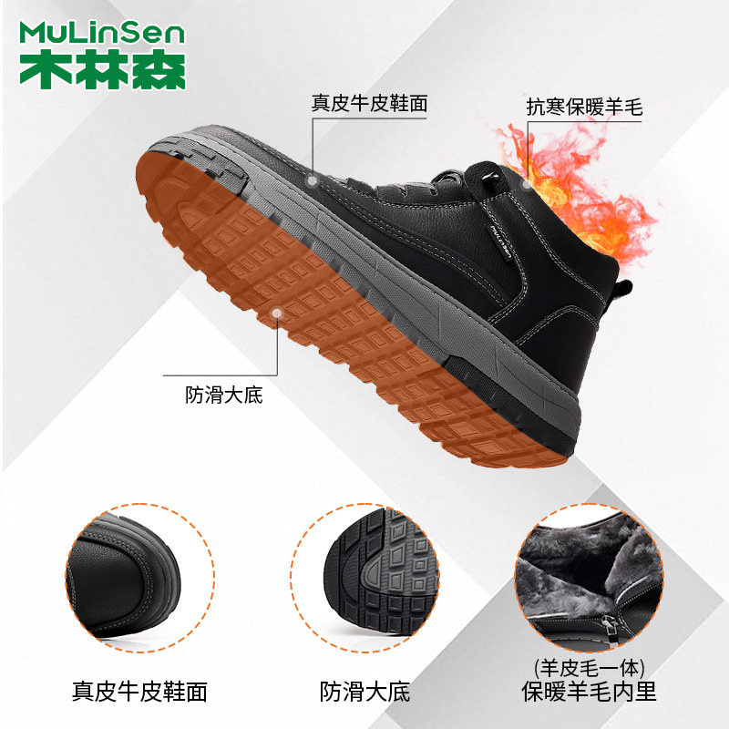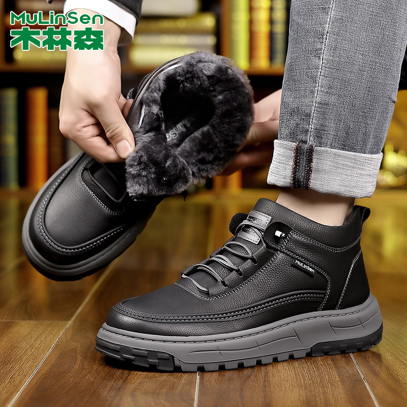 木林森男鞋2025新款冬季男款鞋子加厚保暖棉鞋加绒男士休闲鞋皮鞋