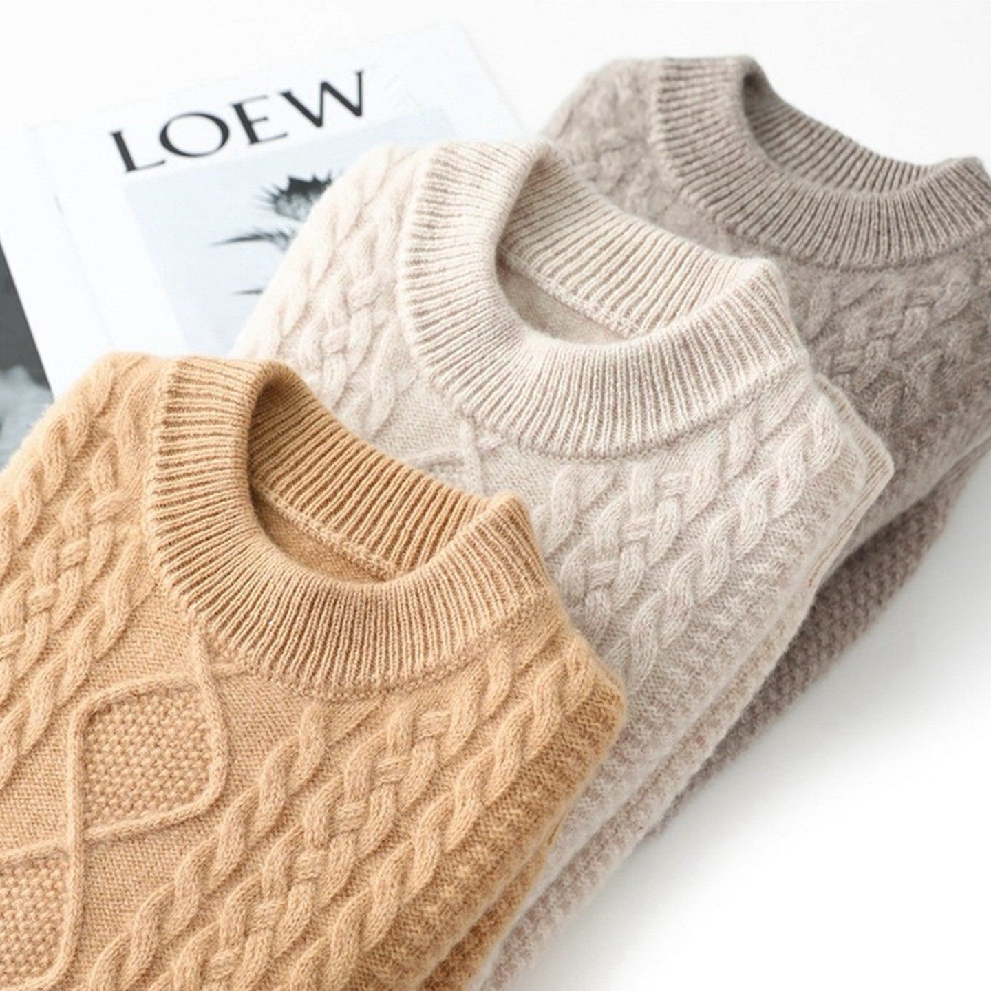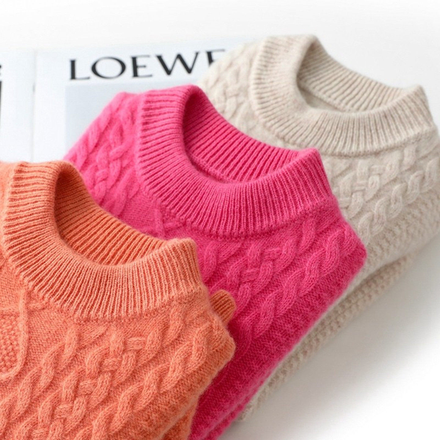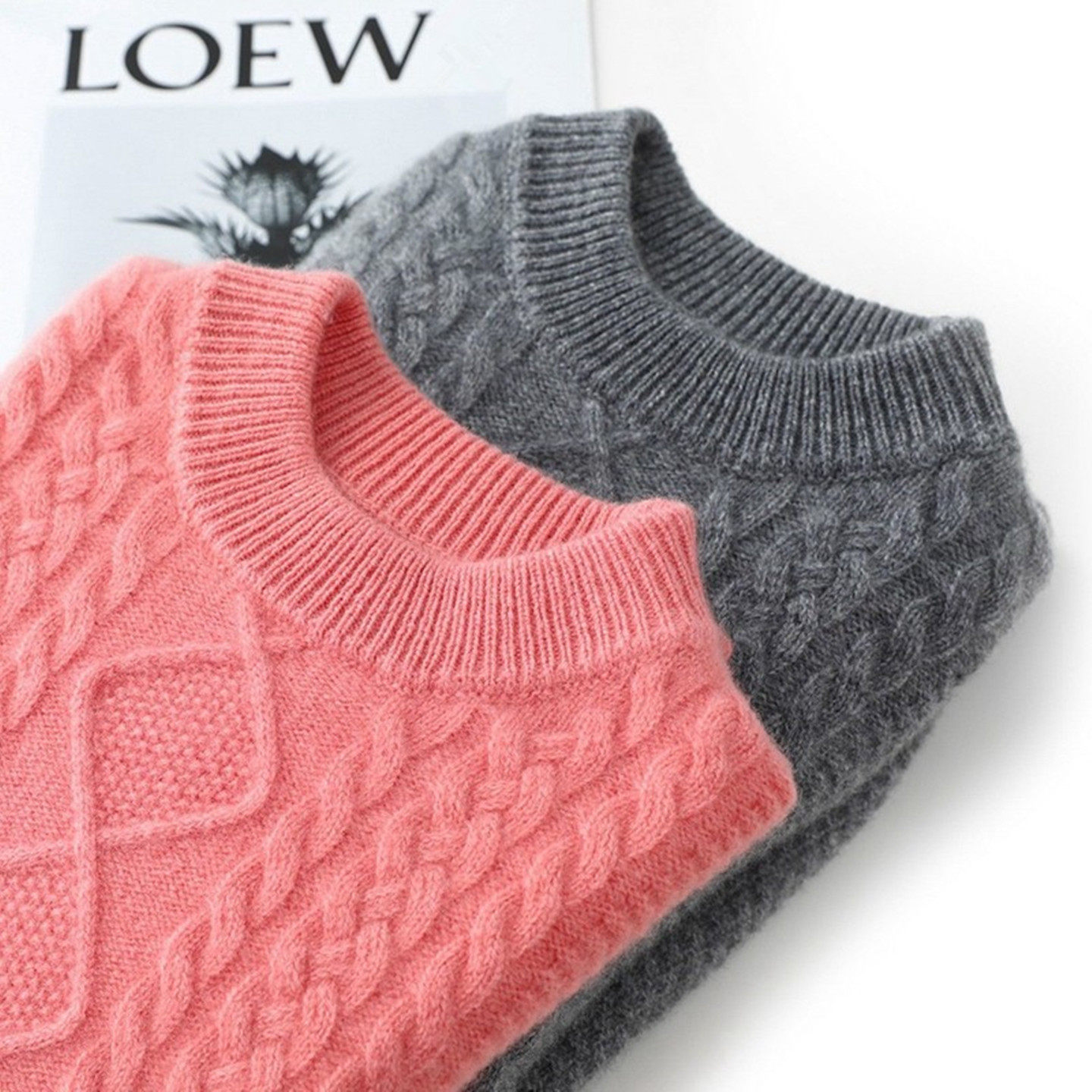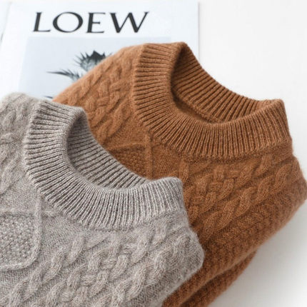 秋冬季儿童加厚纯羊毛衫女童圆领麻花毛衣男童提花加厚羊绒衫童装