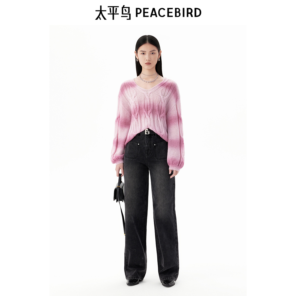 太平鸟女装年秋冬新款晕染绞花线套衫A1EBE414S
