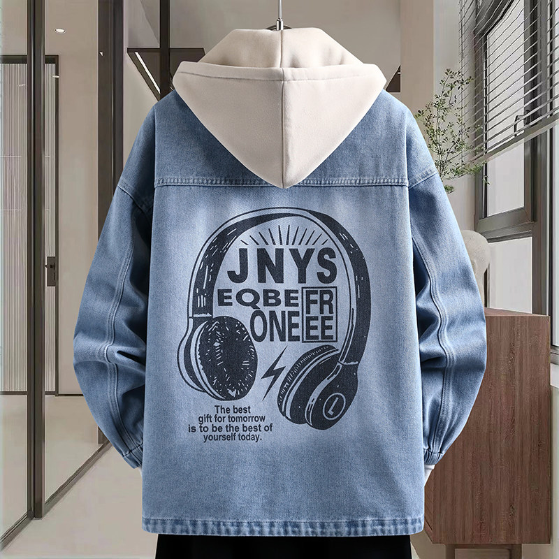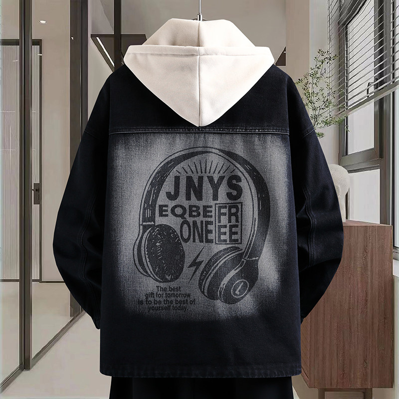 春季穿搭潮牌新款青少年可脱卸帽牛仔夹克背面印花设计男生外套
