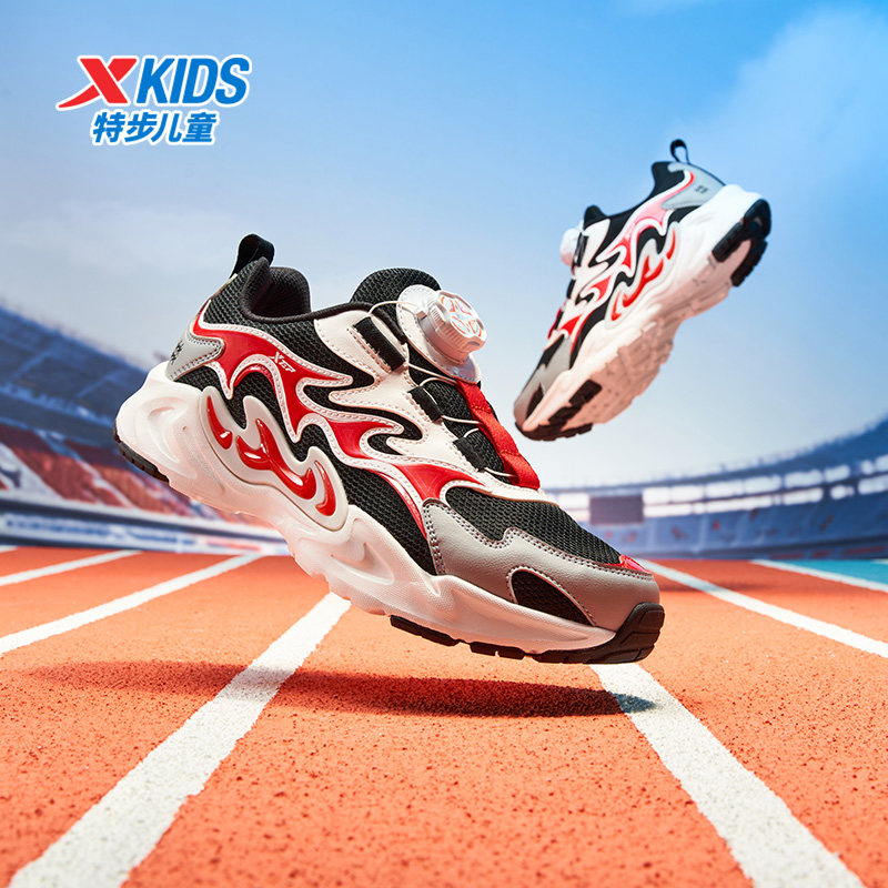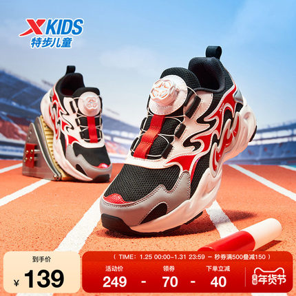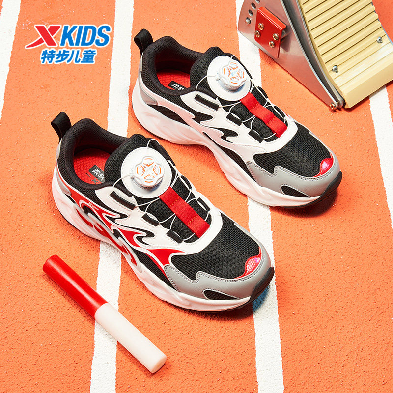 特步童鞋秋季新款中大童旋钮扣休闲鞋儿童运动鞋男童软底防滑鞋子