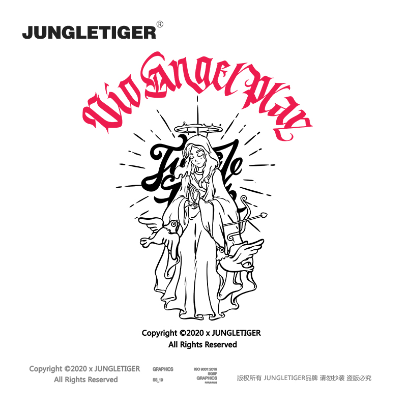丛林老虎原创天使纯棉短袖T恤男