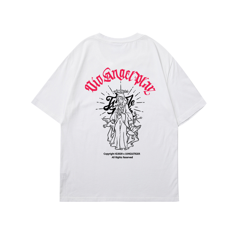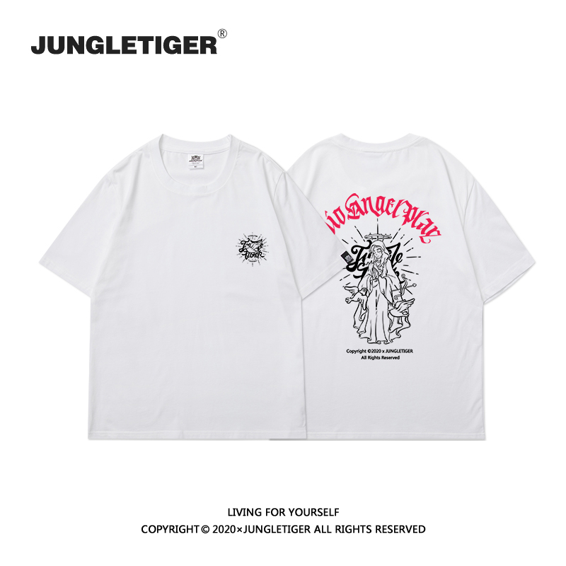 丛林老虎美式原创天使印花短袖T恤男高街oversize宽松大码半截袖
