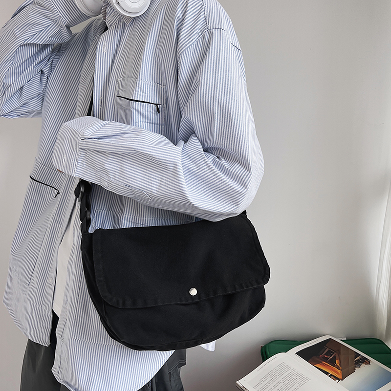 日系休闲帆布包斜挎包男女复古简约单肩包学生背包上课包男士挎包