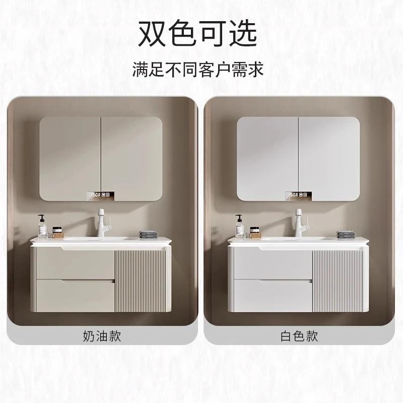 实木圆角隐藏式风水镜柜智能吊柜式组合卫生间洗手洗脸一体陶瓷盆