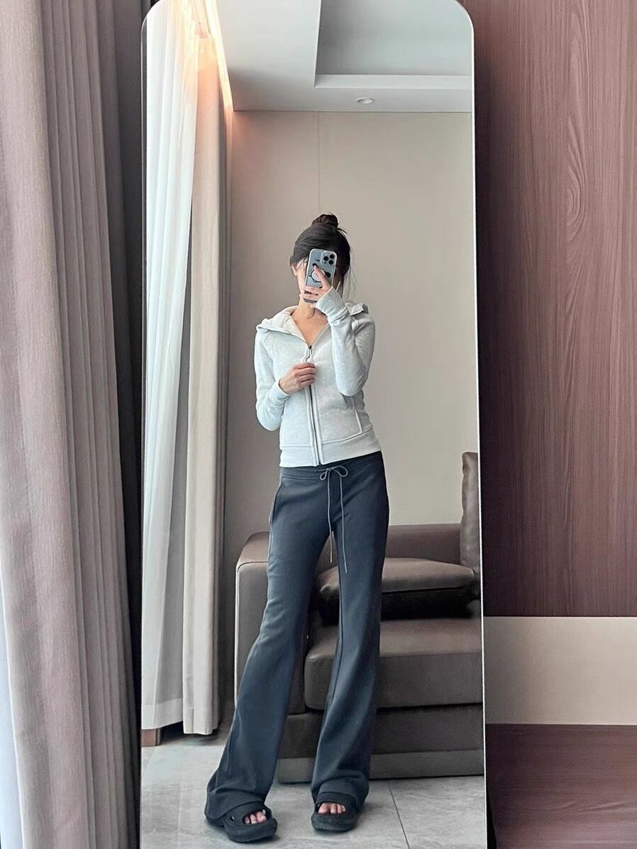 美式运动卫衣连帽外套女装秋冬加绒加厚灰色拉链修身短款开衫上衣