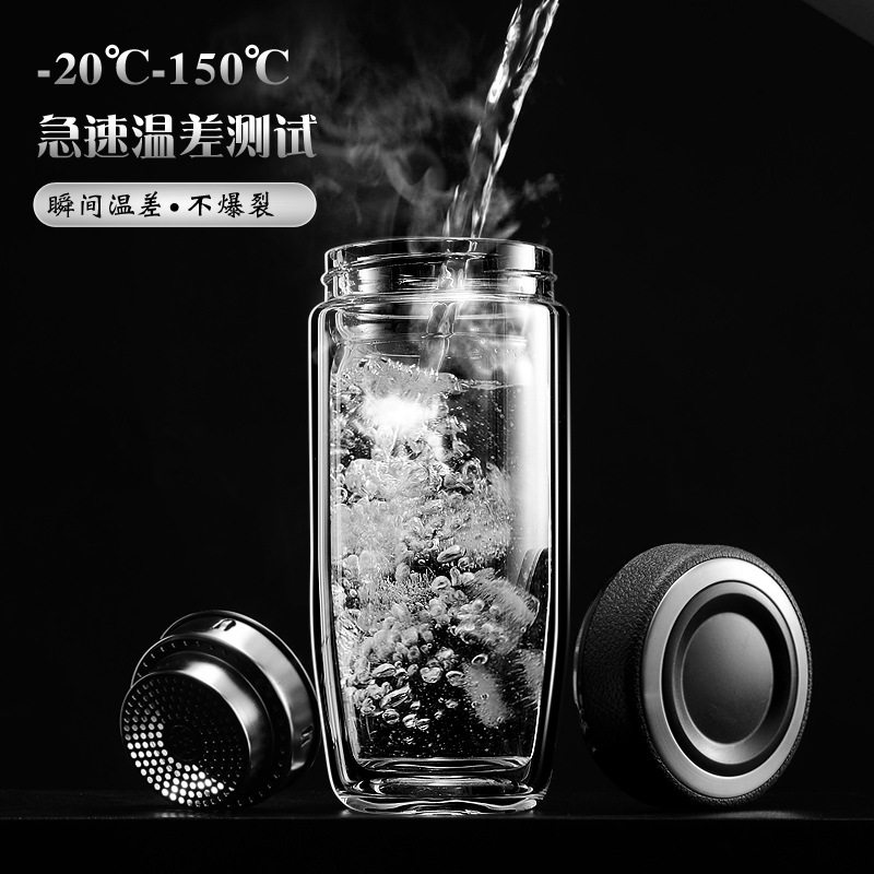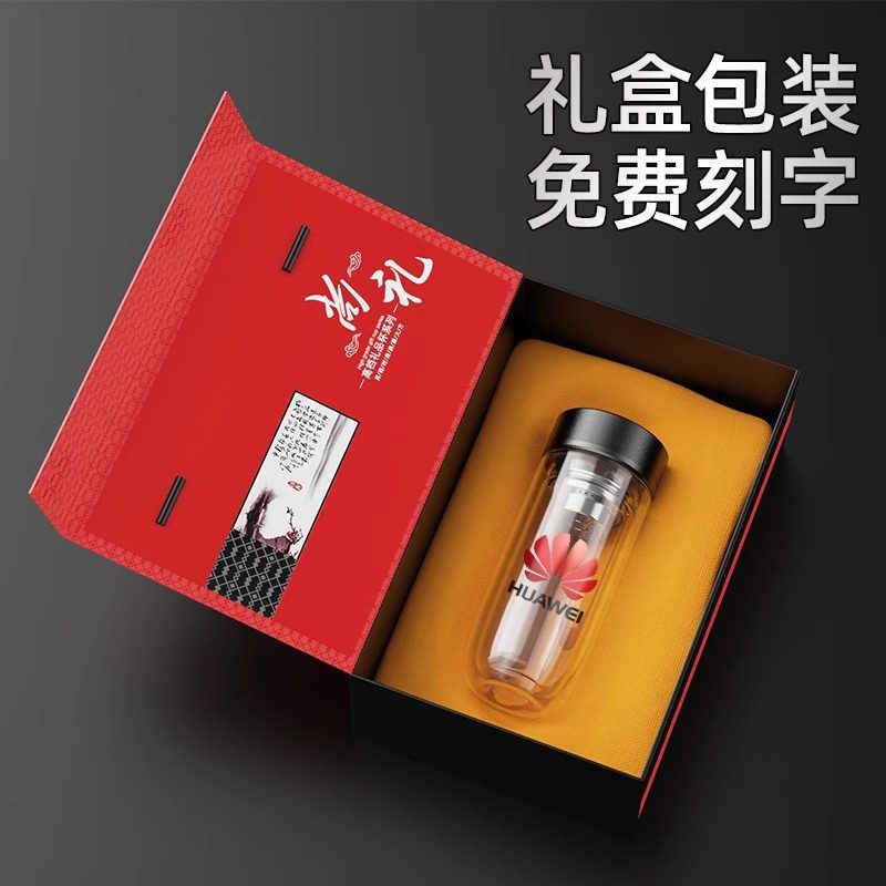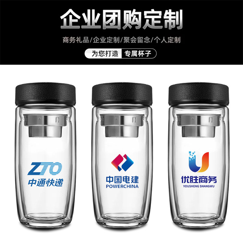 鹅蛋杯双层玻璃杯定制印logo公司广告杯子商务活动礼品水杯刻字
