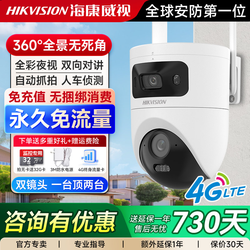 海康威视4G免流量摄像头监控器户室外家用高清手机远程无线摄影头