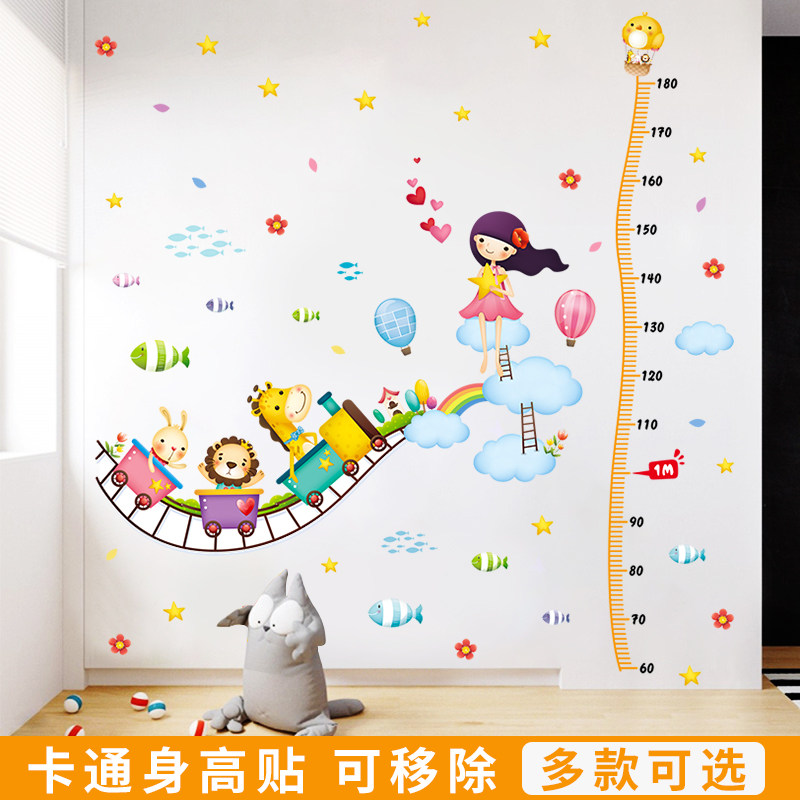 墙纸自粘儿童房间装饰身高墙贴卡通小孩宝宝测量尺身高贴纸可移除