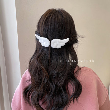 魔法少女发夹侧边夹白色天使小翅膀边夹可爱日系毛绒鸭嘴发卡头饰