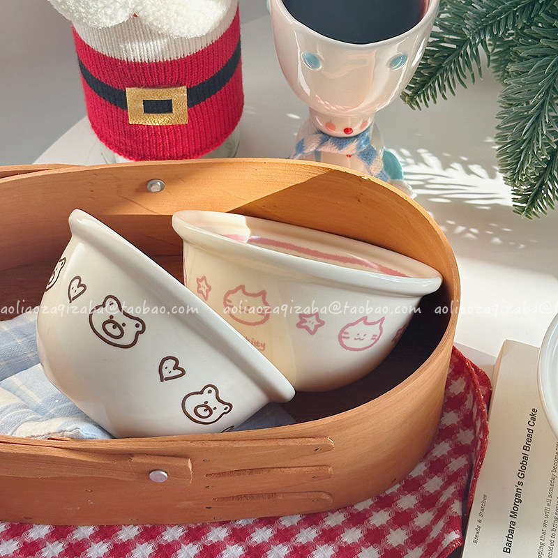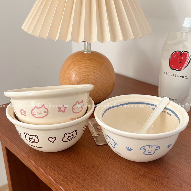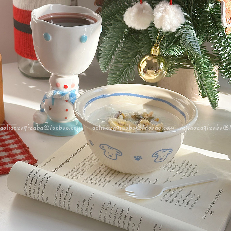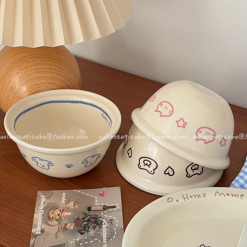 可爱卡通奶油风小狗陶瓷餐具碗创意沙拉碗饭碗面碗麦片水果酸奶碗