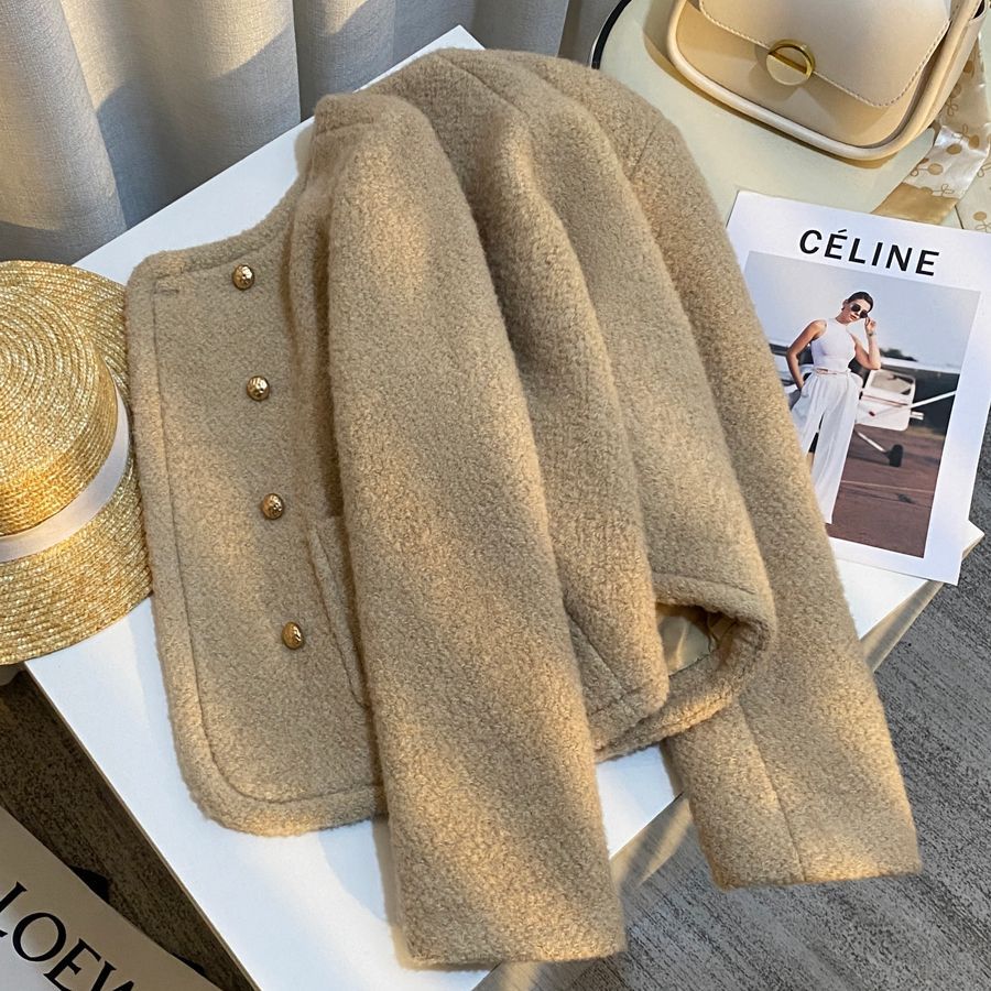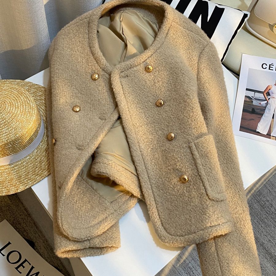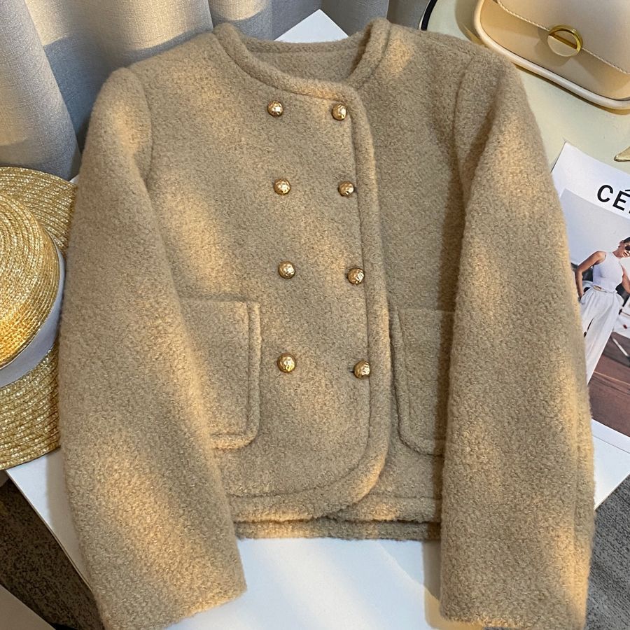 小香风外套2025冬装新款女装加绒加厚圆领双排扣甜美宽松上衣