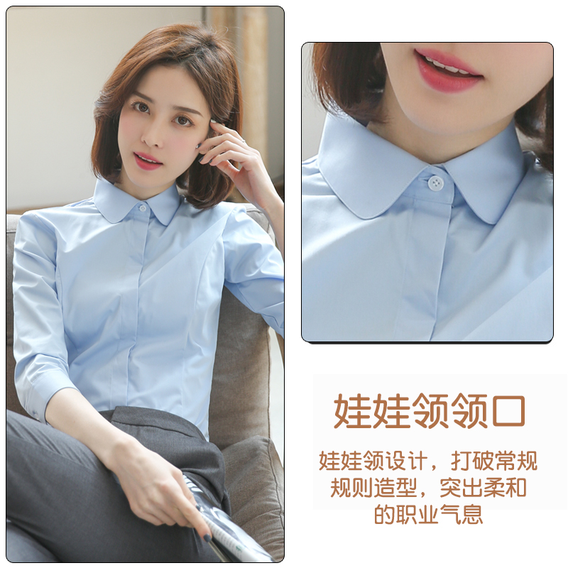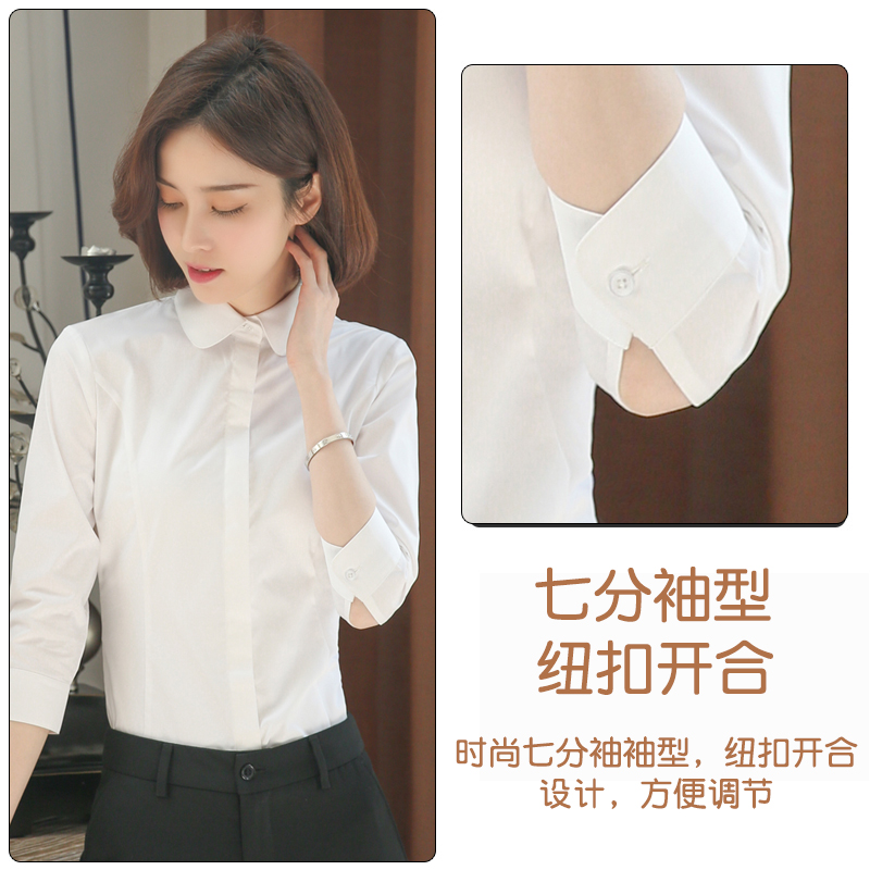 优柏白色七分袖衬衫女春款娃娃领工衣工作服工装女寸衫职业白衬衣