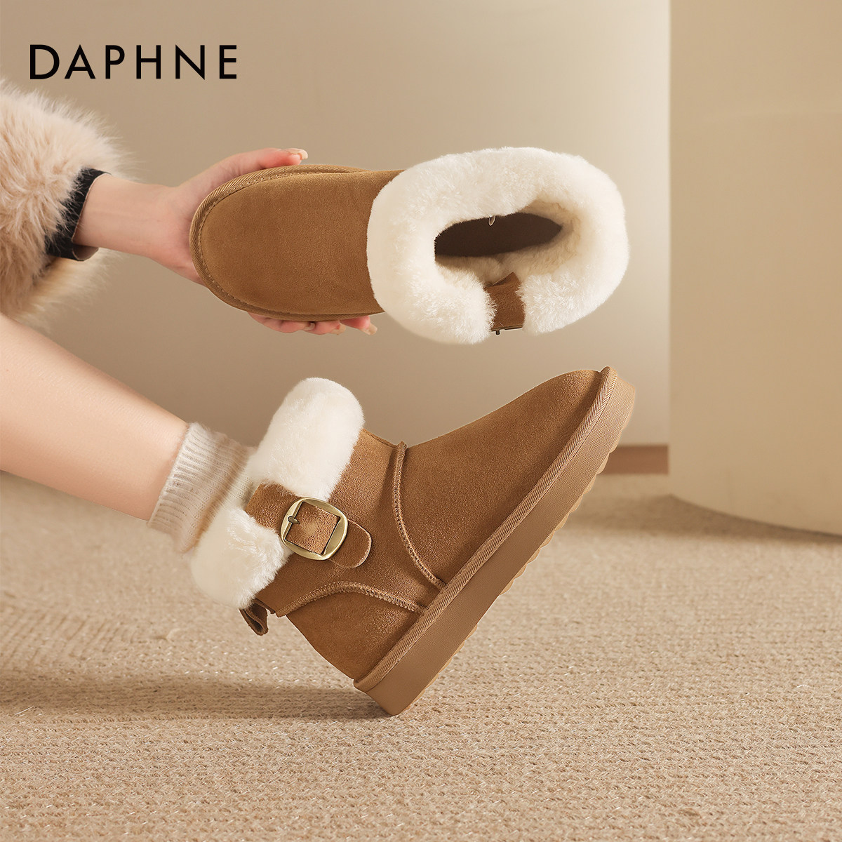 达芙妮厚底雪地靴女东北棉靴保暖