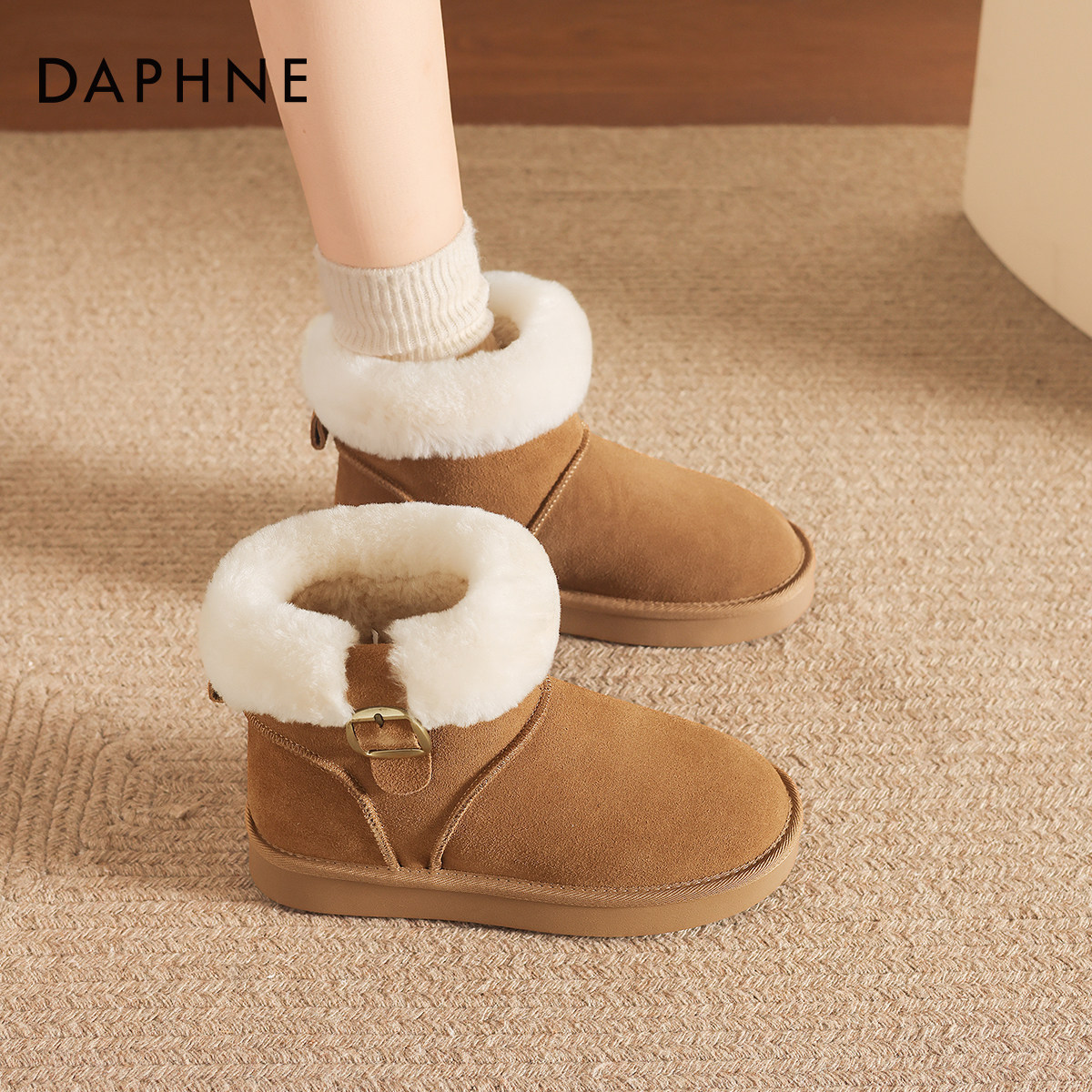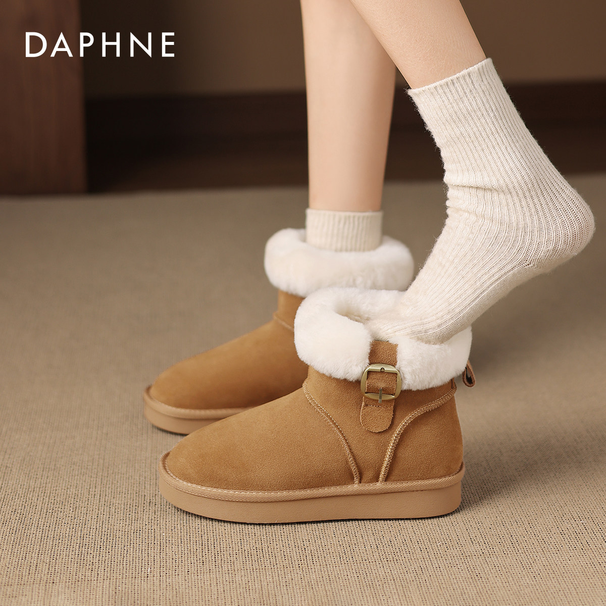 达芙妮厚底雪地靴女款2025新款冬季加绒加厚短靴东北棉靴保暖棉鞋