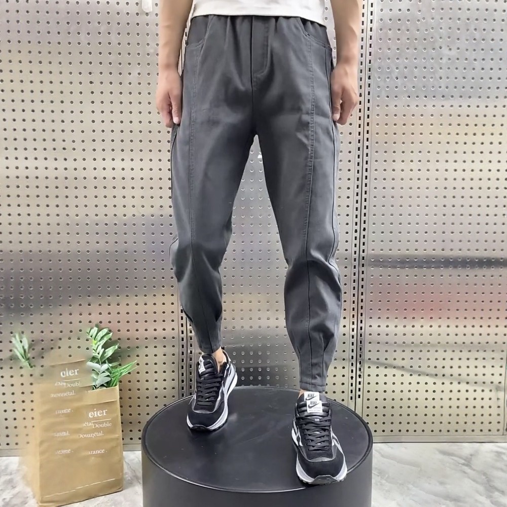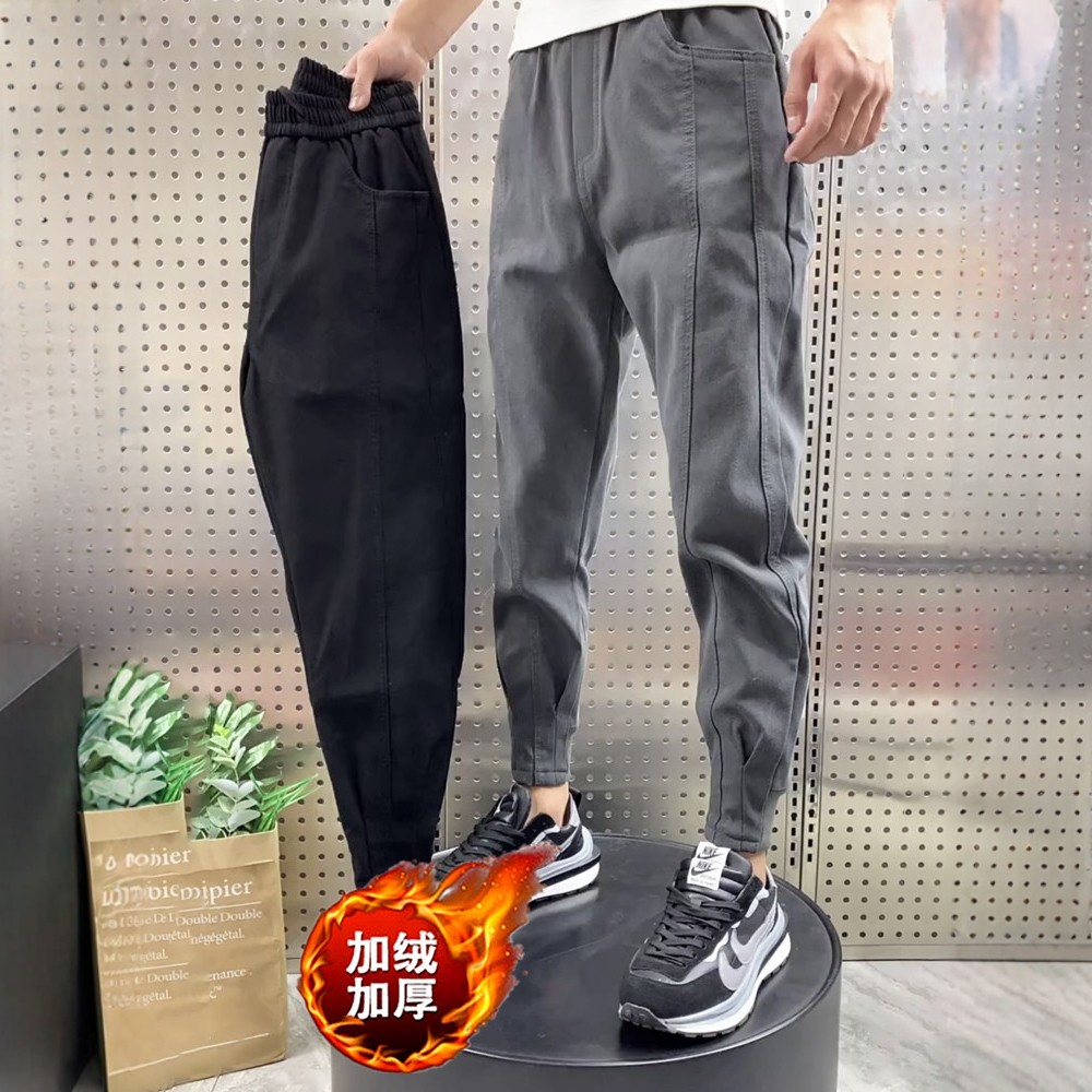 春秋季痞帅修身休闲工装裤子男士冬天韩版小脚长裤潮流加绒束脚裤