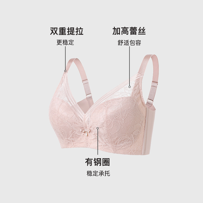 茜施尔性感内衣女薄款蕾丝软钢圈大胸显小聚拢调整型收副乳内衣