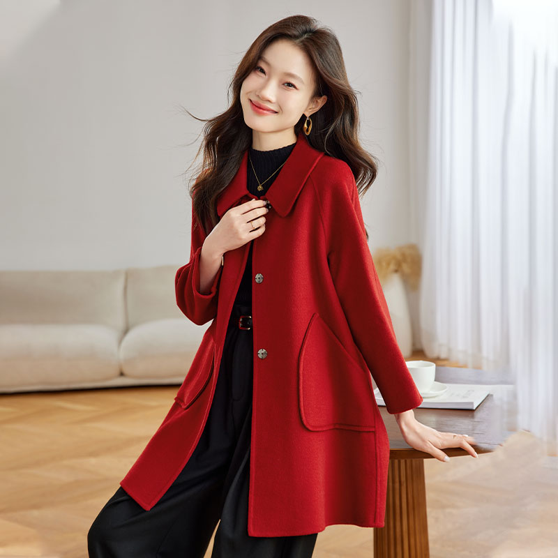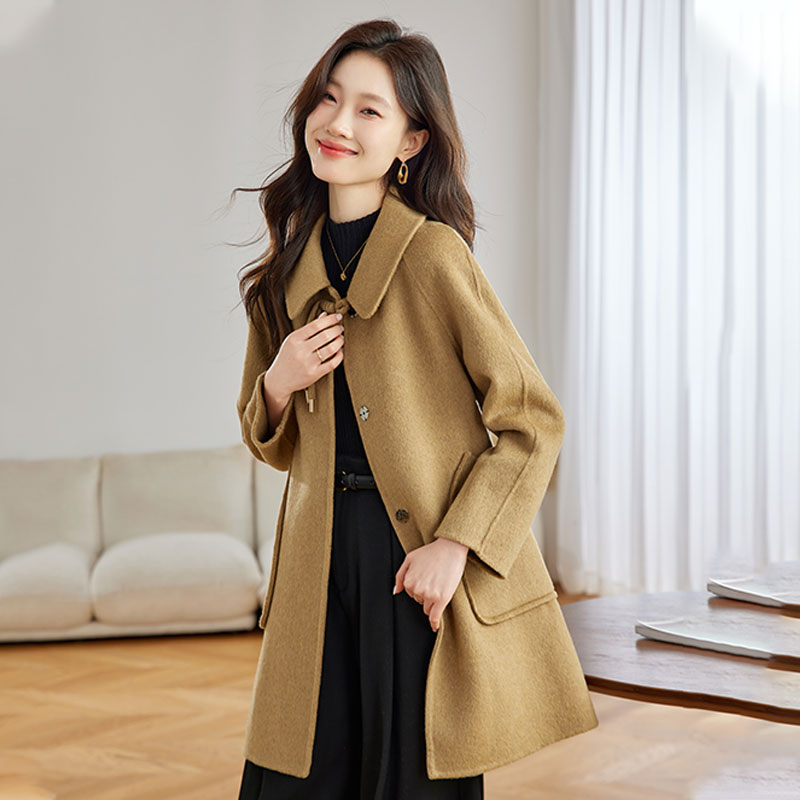 新中式盘扣羊毛呢外套女秋冬中长款2024新款高端双面羊绒呢子大衣