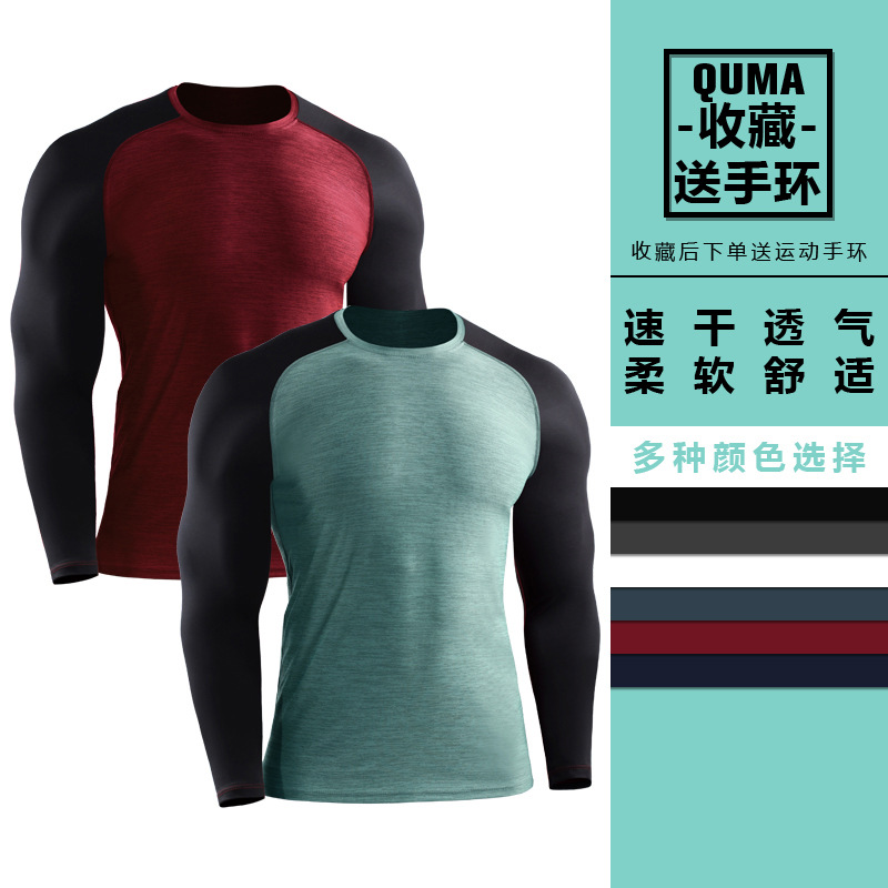 男士速干透气长袖跑步训练上衣加大码修身篮球运动服肌肉健身T恤