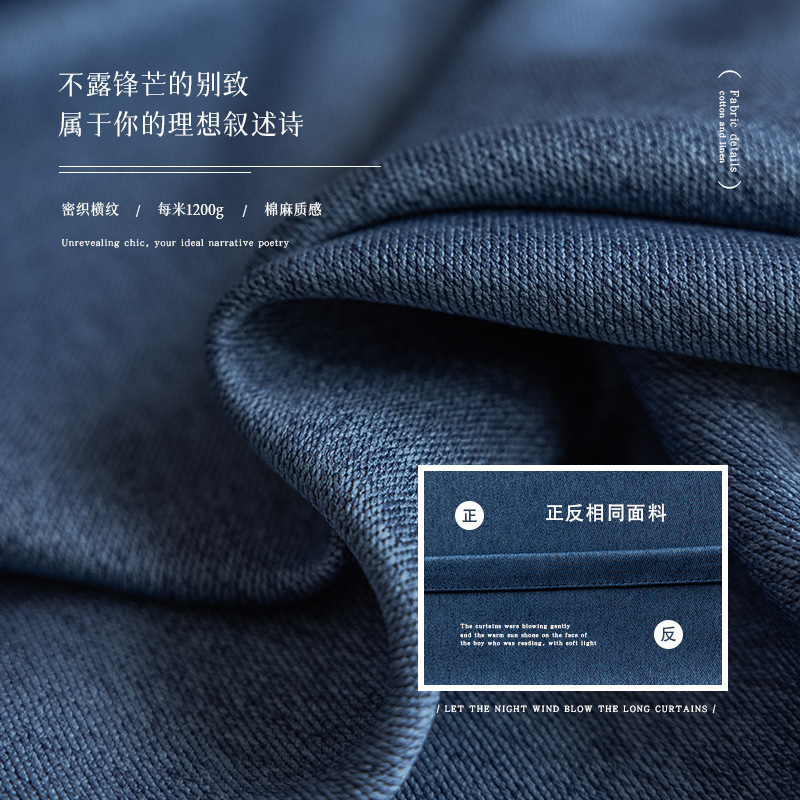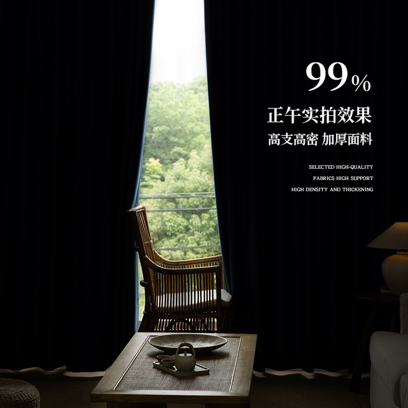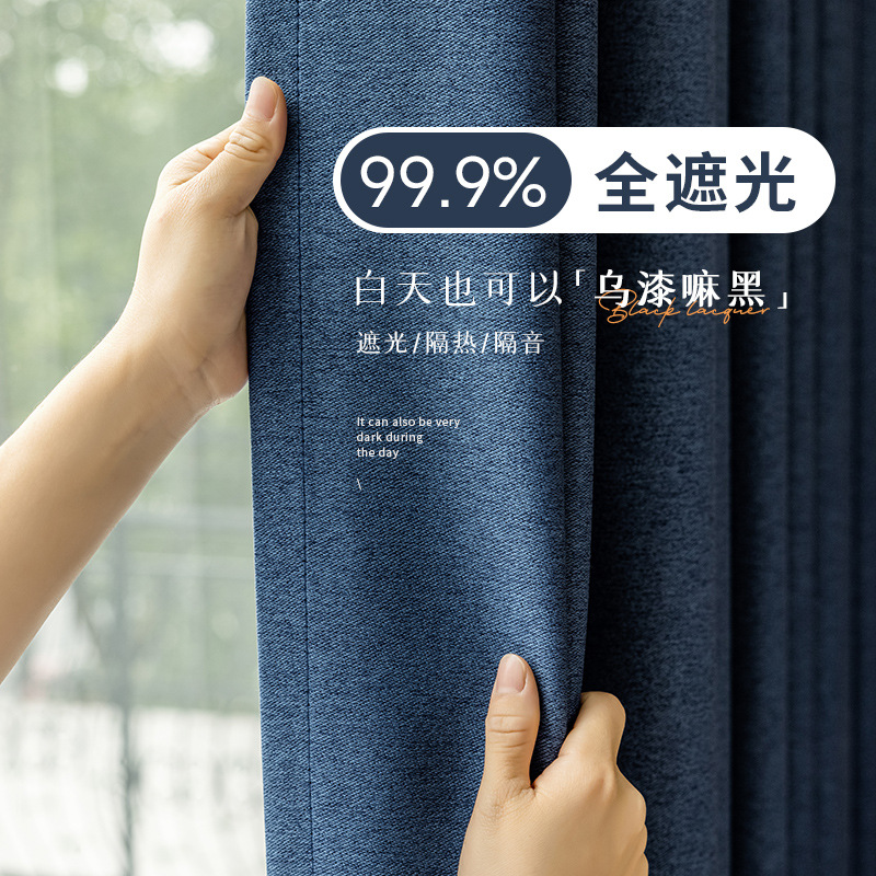 双面麻窗帘全遮光 防光100不透光加厚 现代简约客厅卧室遮光布