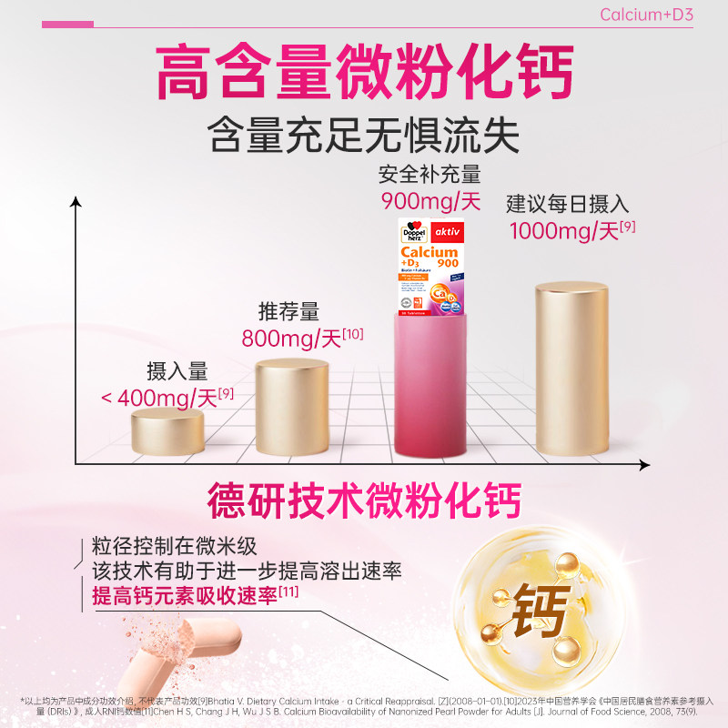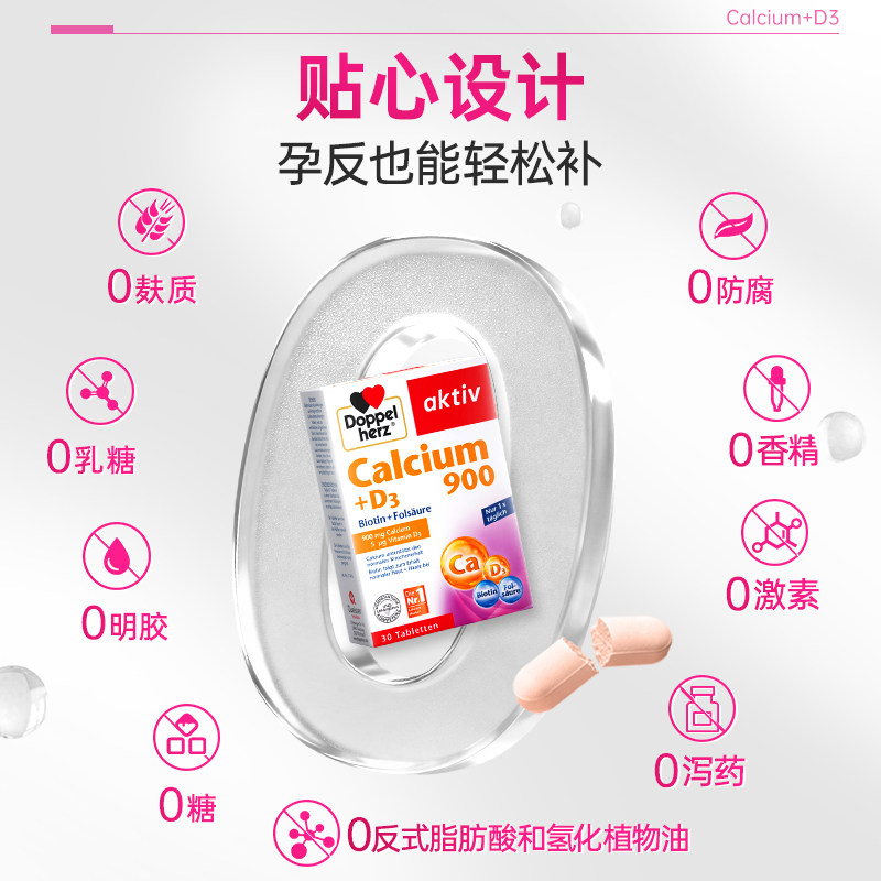 德国双心钙片D3微粉化钙片孕妇成人高含量补钙维d营养片官方正品