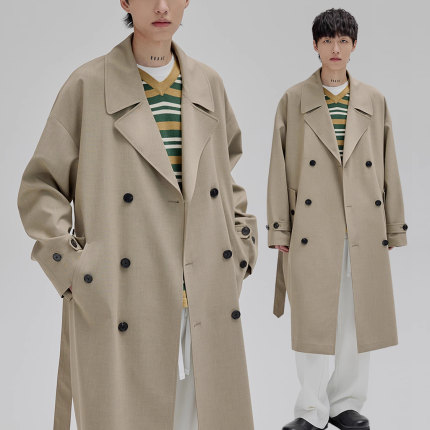 2025新款中长款风衣春秋款韩版宽松高级感外套双排扣修身男士大衣