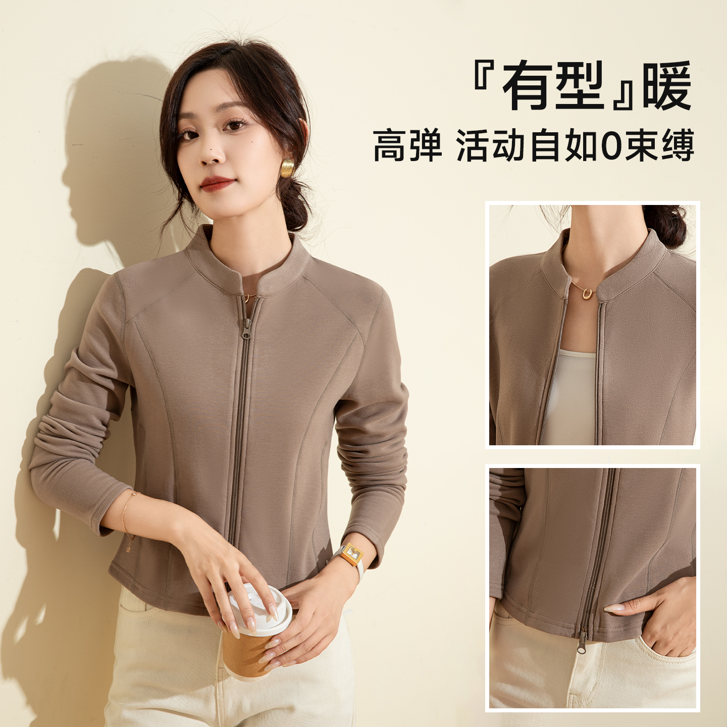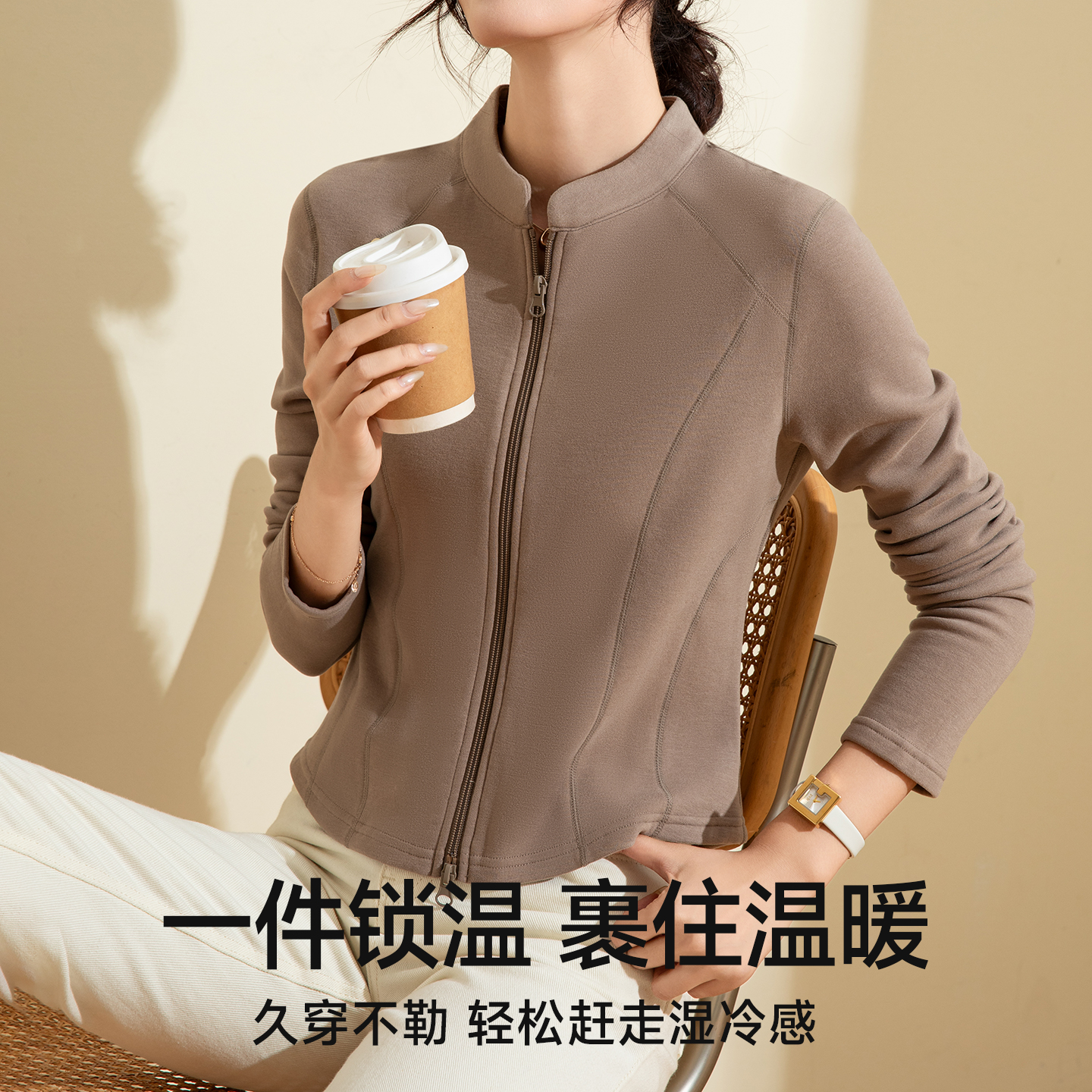 双开拉链羊毛摇粒绒卫衣女士新款保暖上衣外套内胆短款修身打底衫