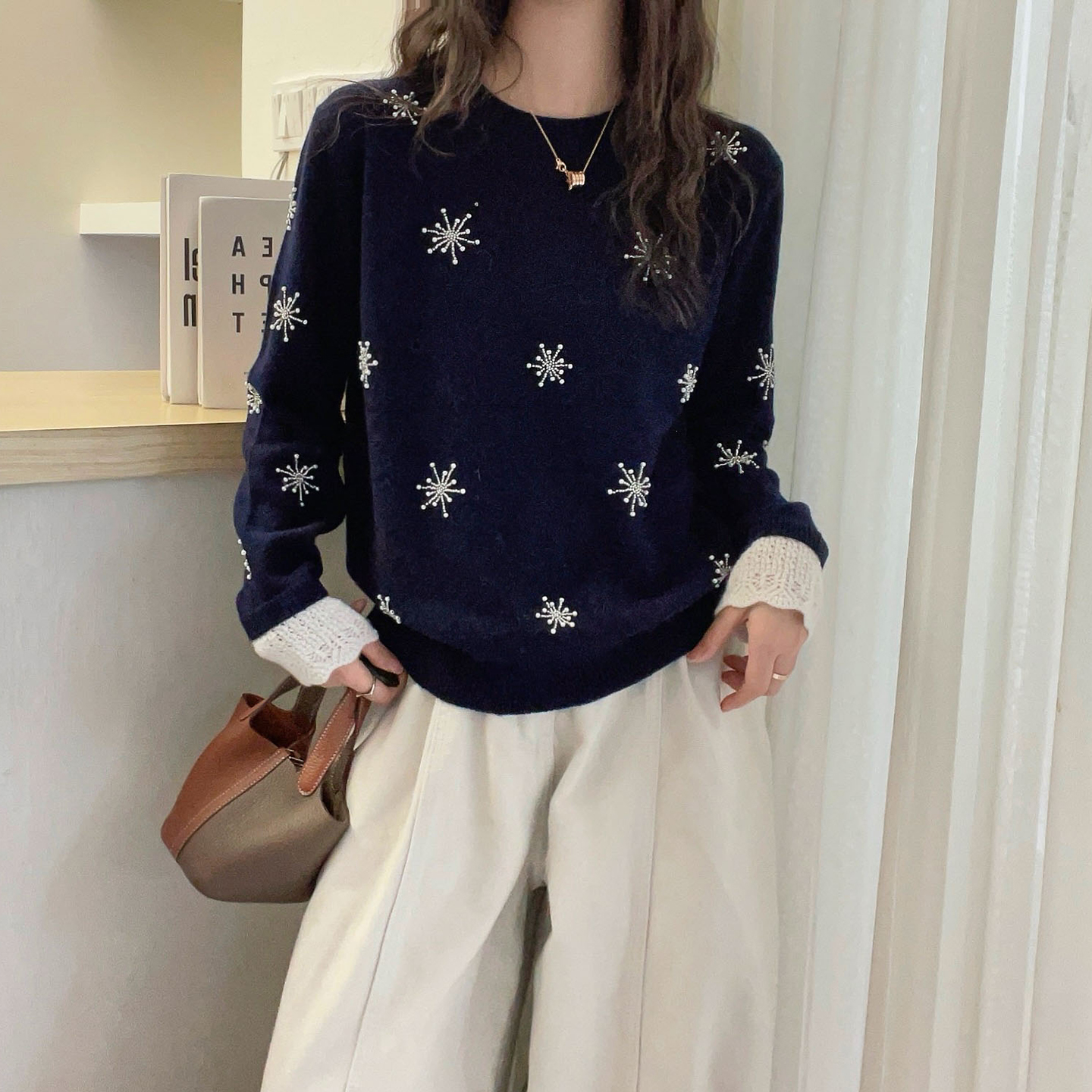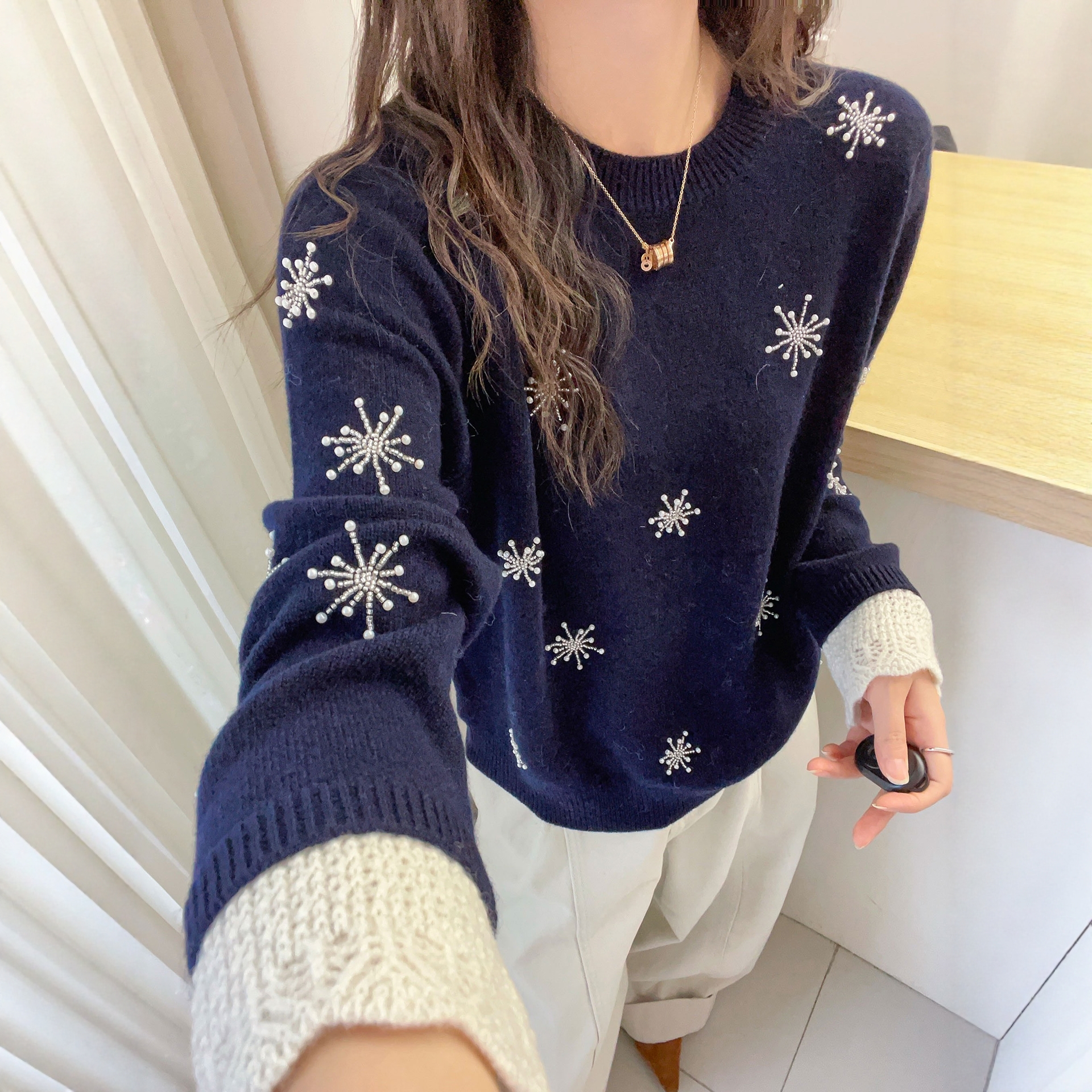 重工钉珠全羊毛针织衫女欧洲站2025秋装新款欧货女装毛衣打底衫潮