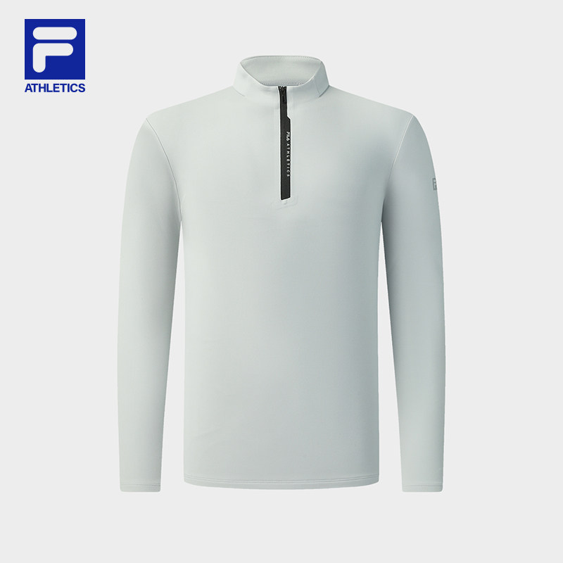 FILA 斐乐官方男子针织长袖衫2025冬季新款健身运动加绒半拉链长T