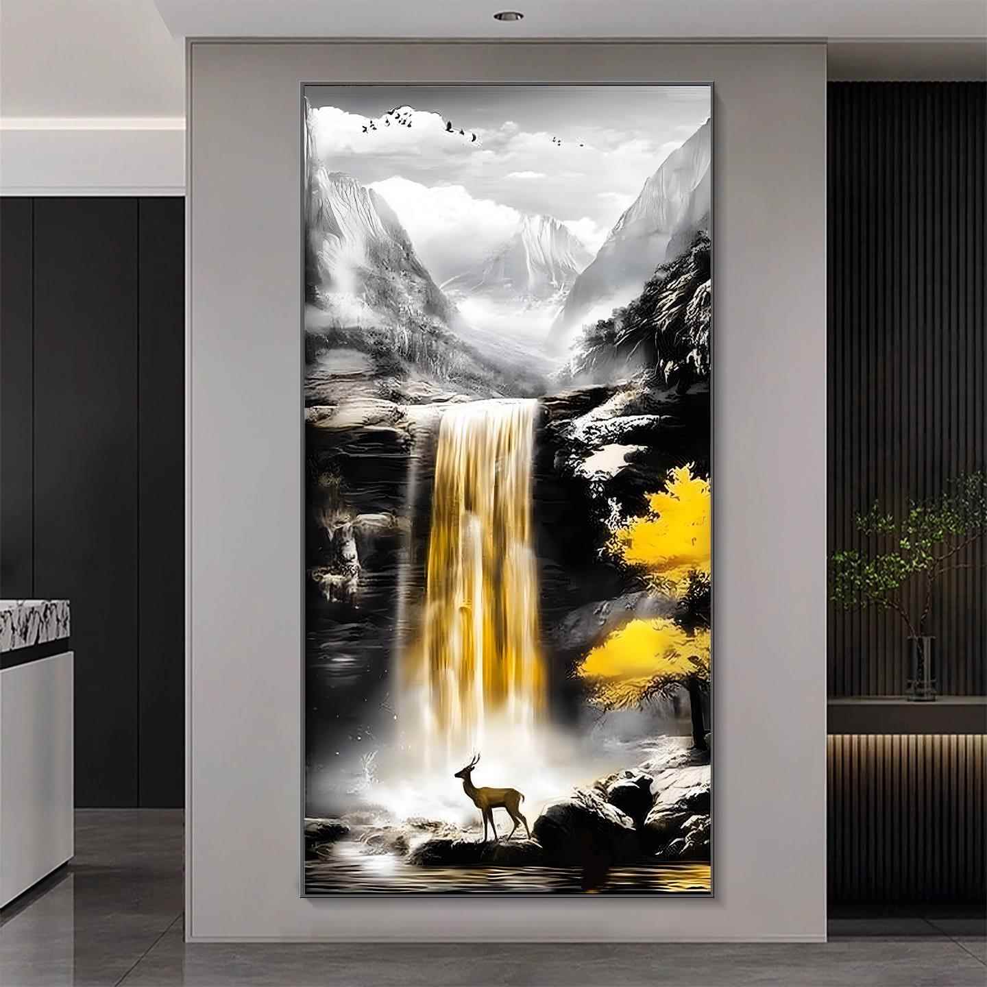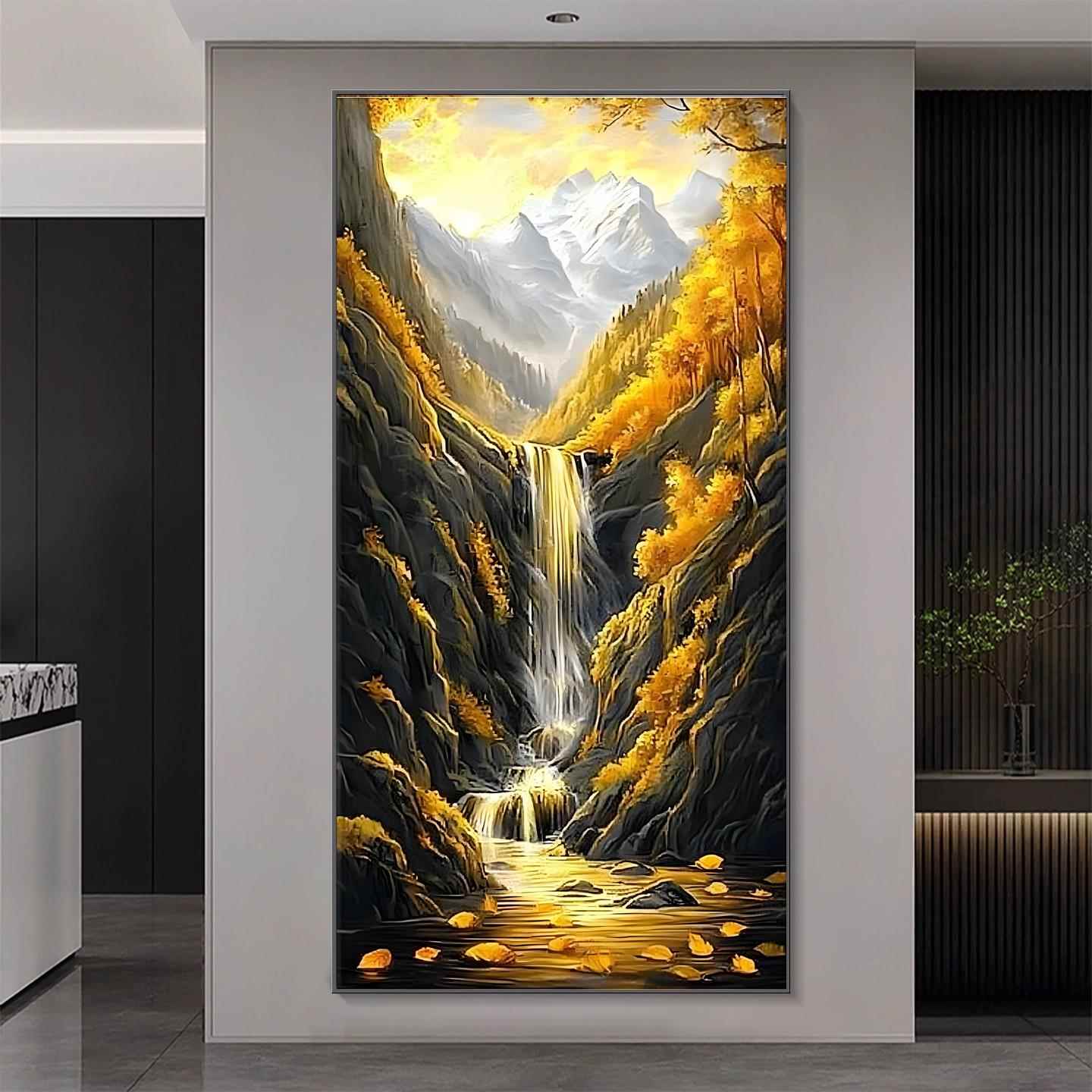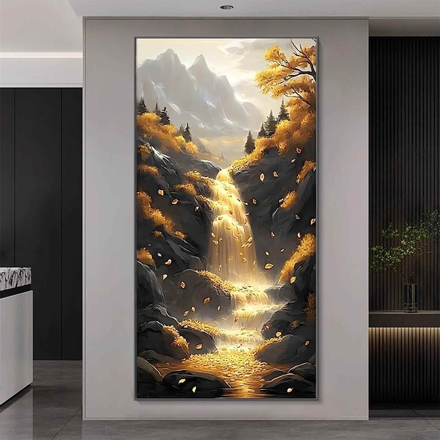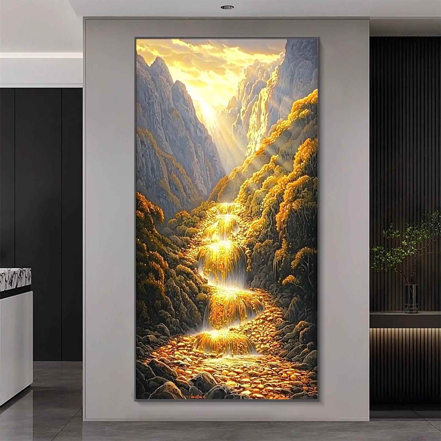 轻奢晶瓷镶钻高山流水生财玄关装饰画山水客厅走廊挂画聚宝盆风景
