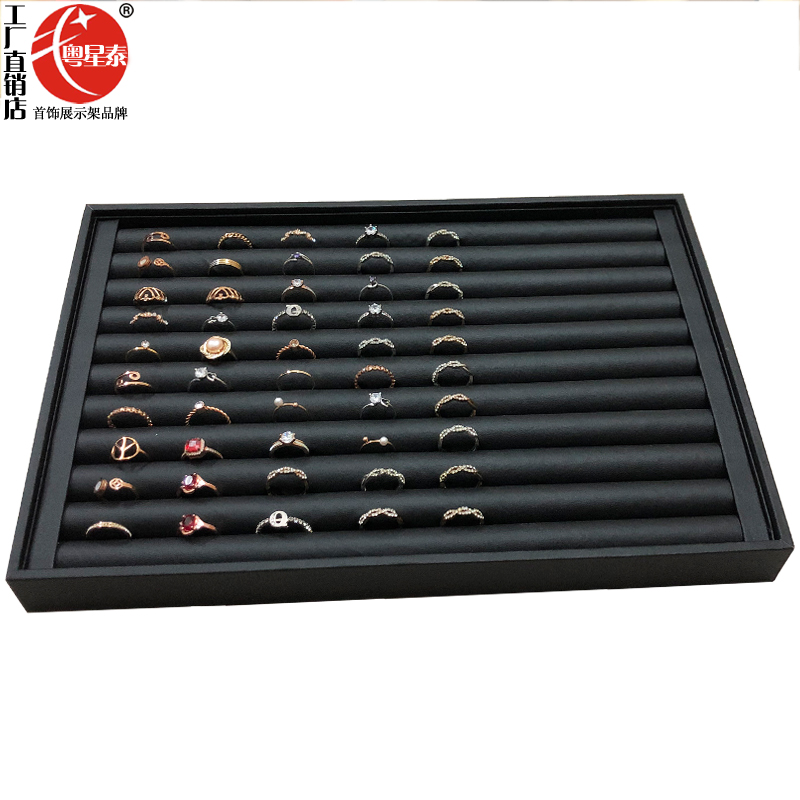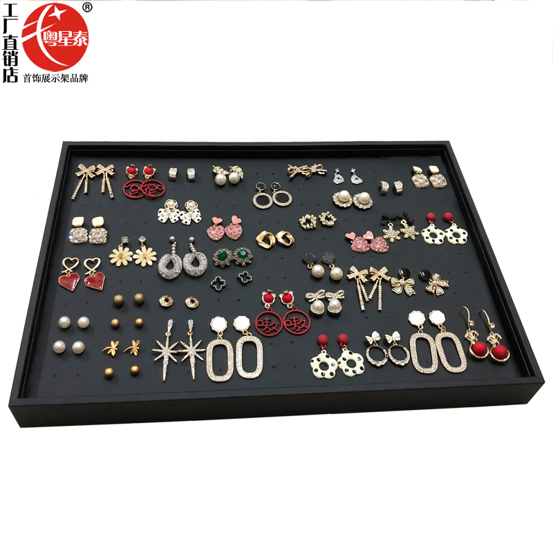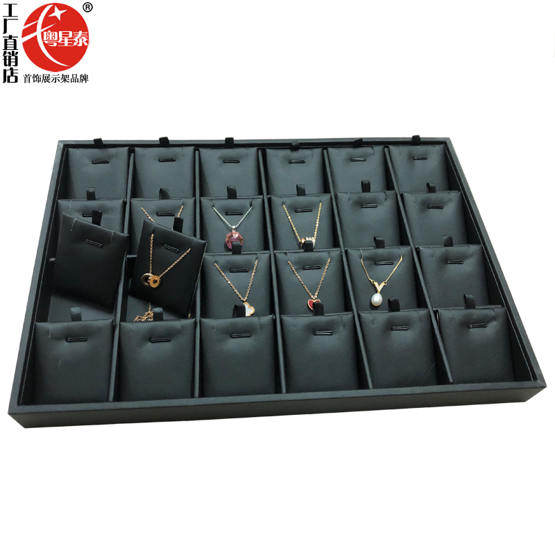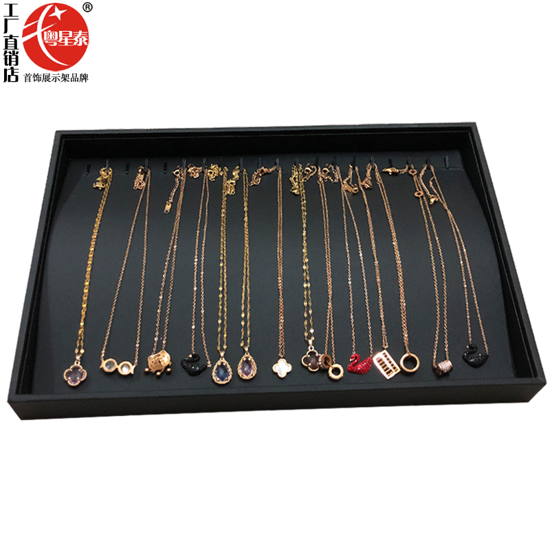 粤星泰高档黑皮珠宝首饰展示道具耳环戒指项链托盘吊坠饰品收纳盒