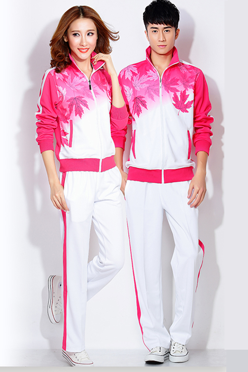 中老年佳木斯健身操广场舞运动服装秋冬男女长袖大码枫叶套装校服