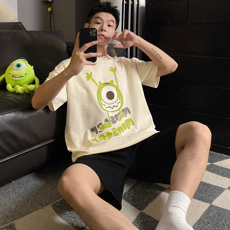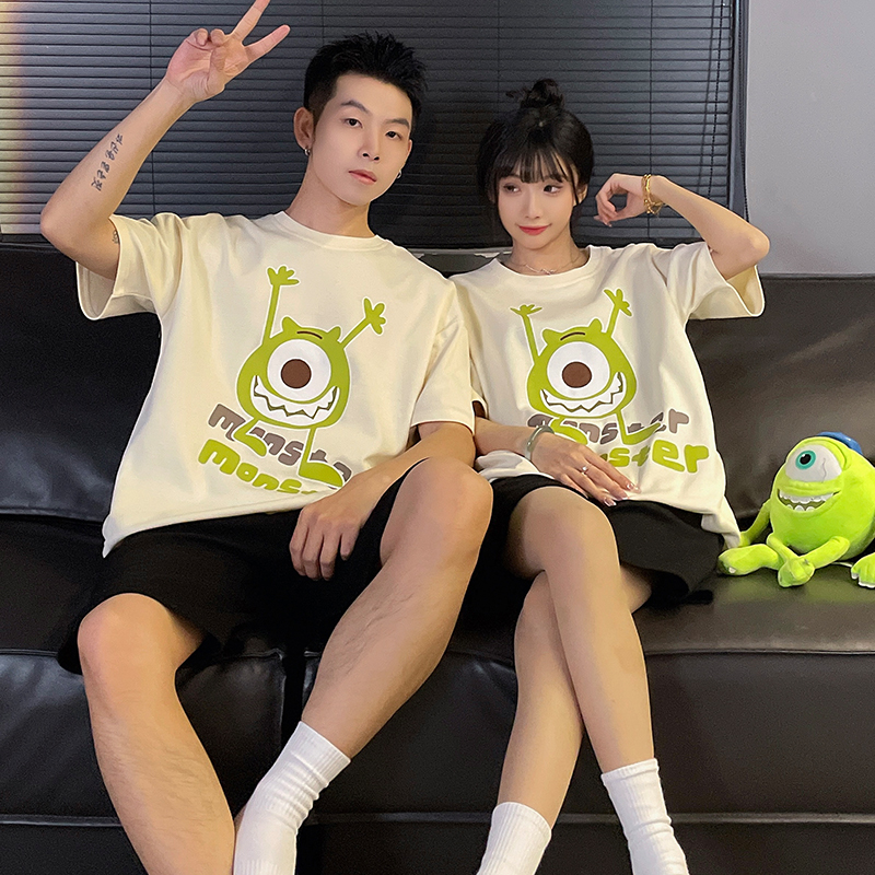 纯棉短袖男女士情侣睡衣夏季新款卡通独眼怪宽松大码可外穿家居服