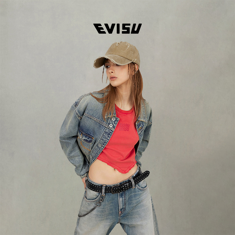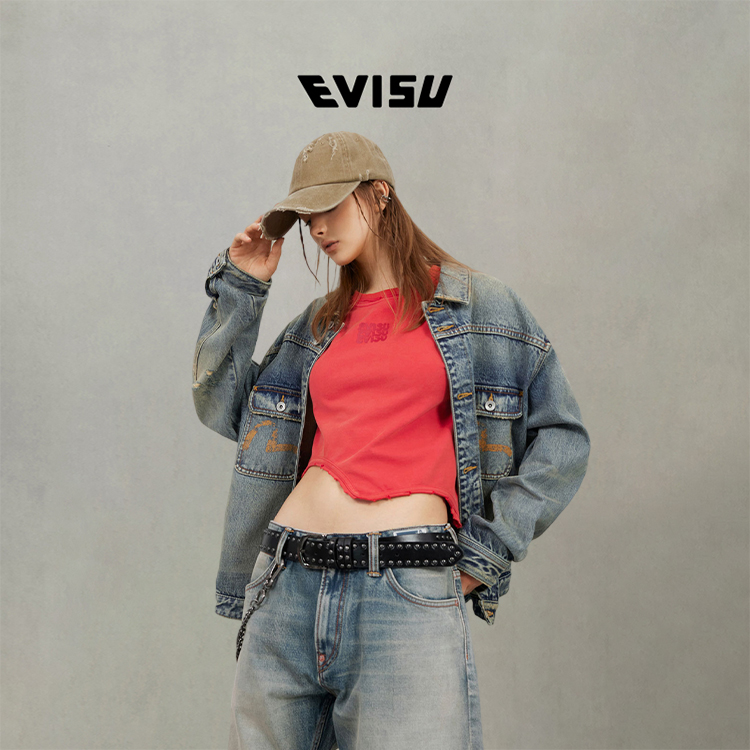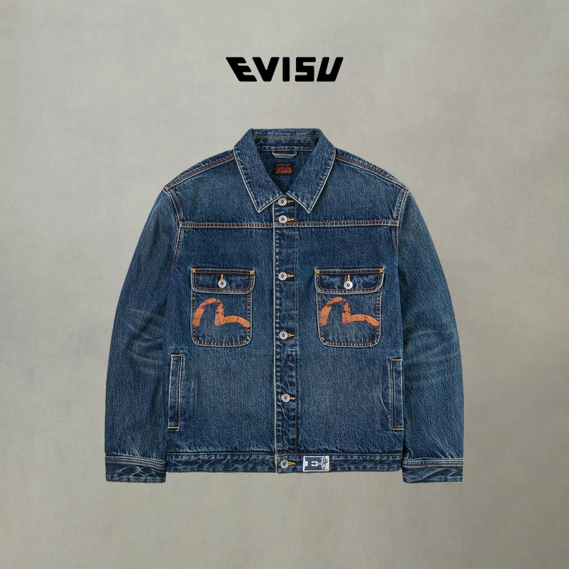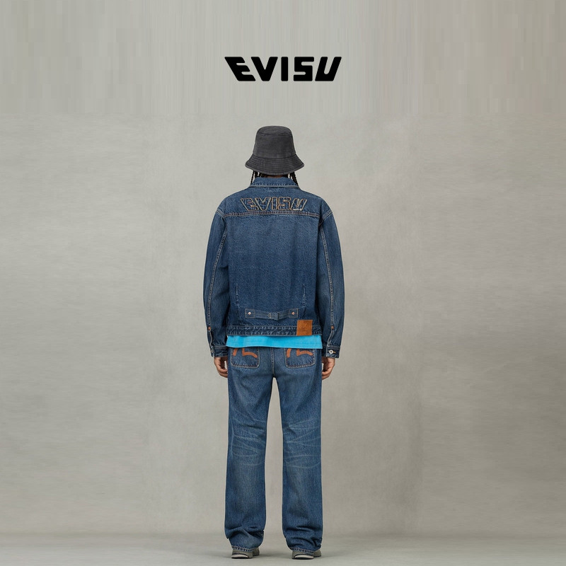 EVISU福神2025秋季新品男女同款潮流商标贴布刺绣牛仔夹克外套