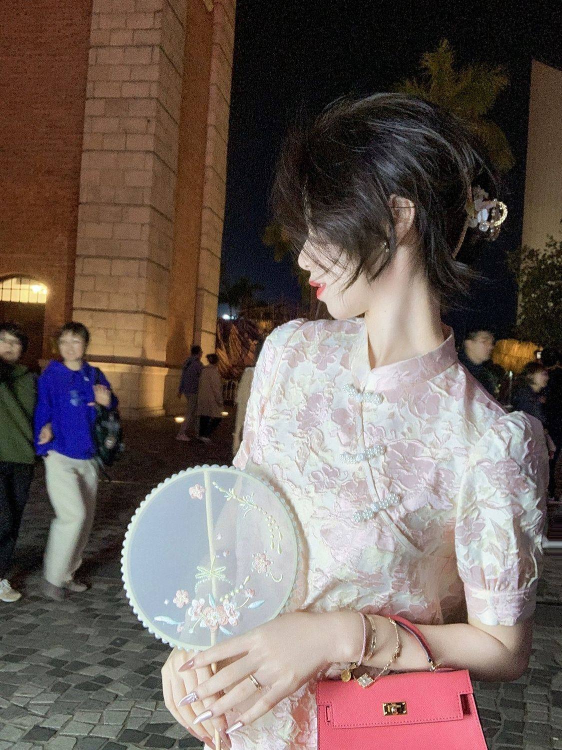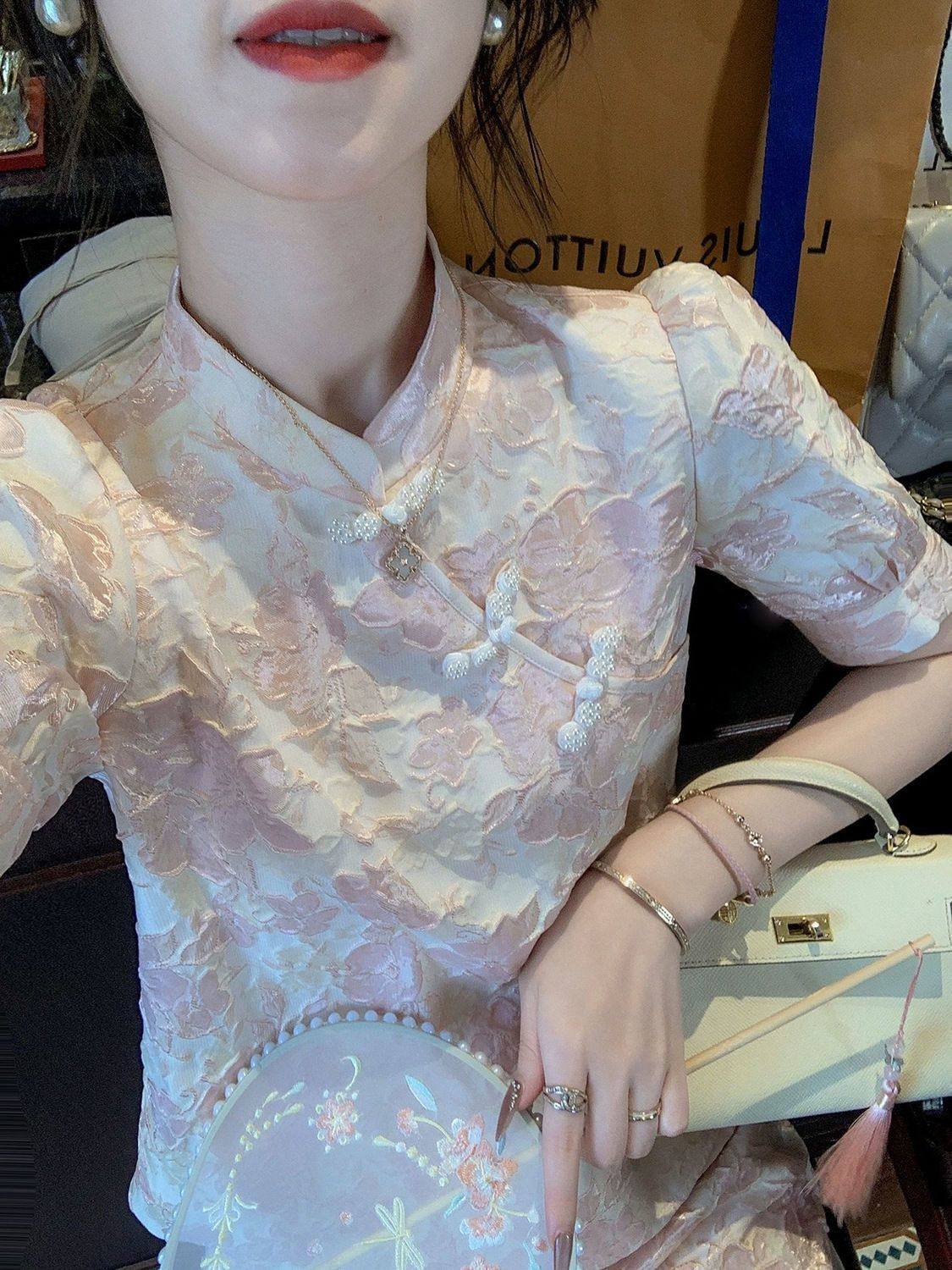 时尚新款休闲减龄名媛气质提花复古国风上衣+高腰短裤夏季女套装