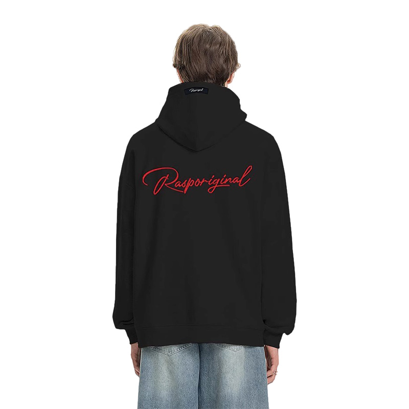 RASP花体LOGO连帽卫衣男国潮牌春秋季加绒美式重磅高街情侣男帽衫