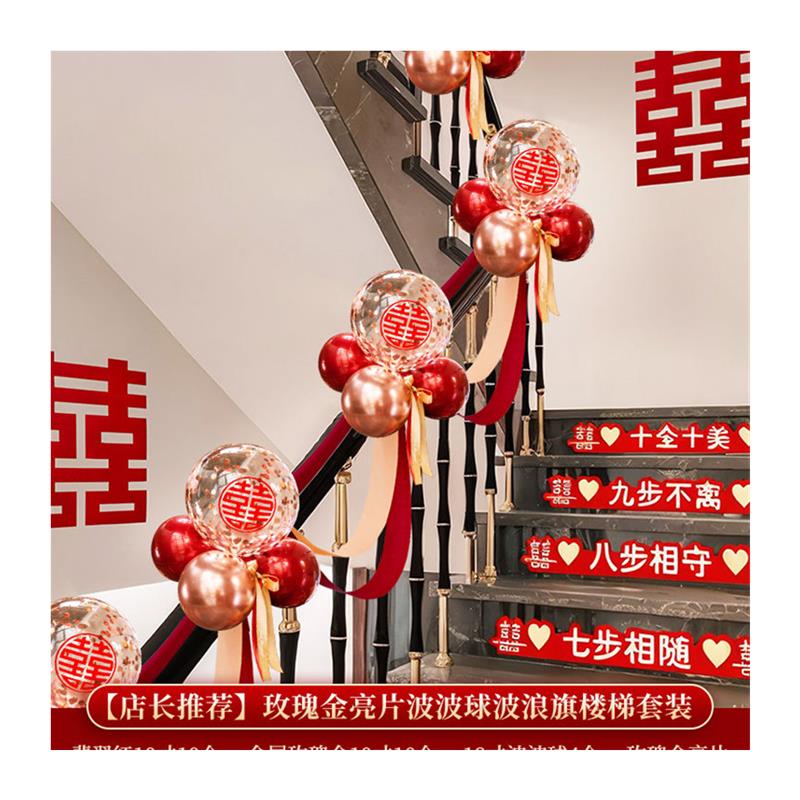 结婚楼梯扶手装饰气球婚礼婚庆用品大全新房台阶拉花婚房布置金小