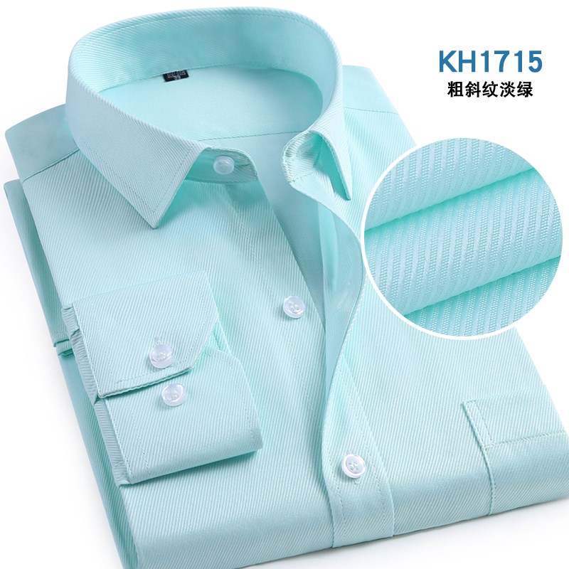 秋季冰绿色衬衫男长袖青年商务职业工装休闲斜纹白衬衣男寸打底衫