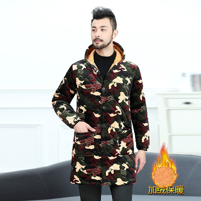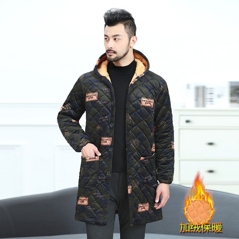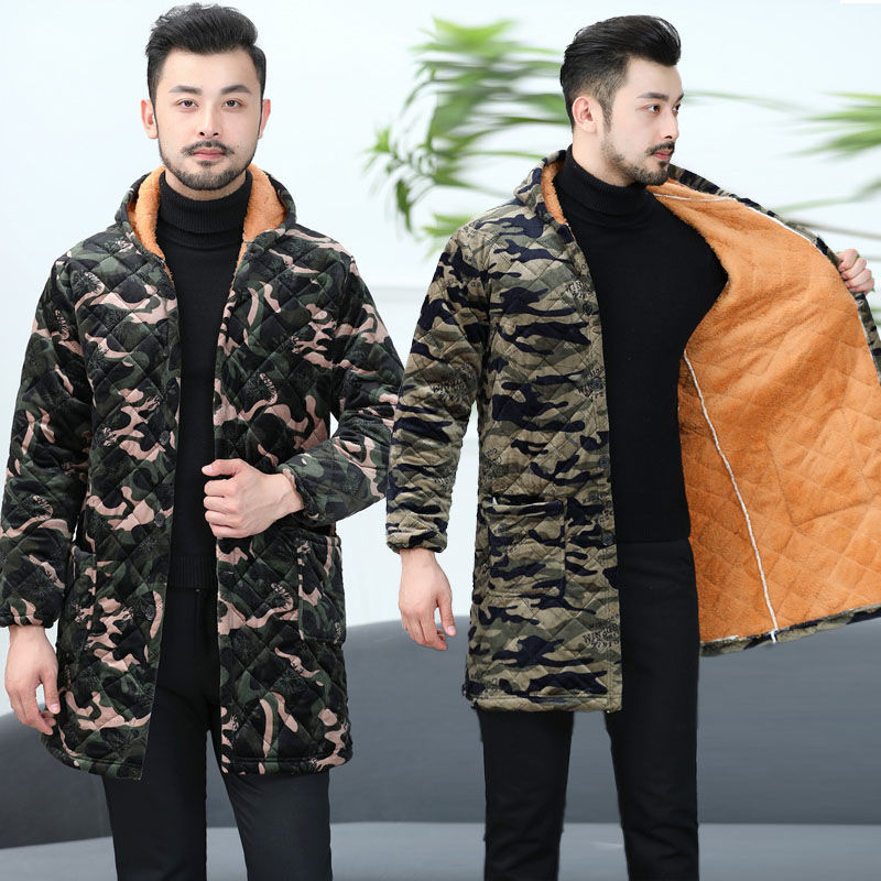 四川省服冬男士加绒外套加厚工作服宽松大码罩衣保暖耐脏棉衣大褂
