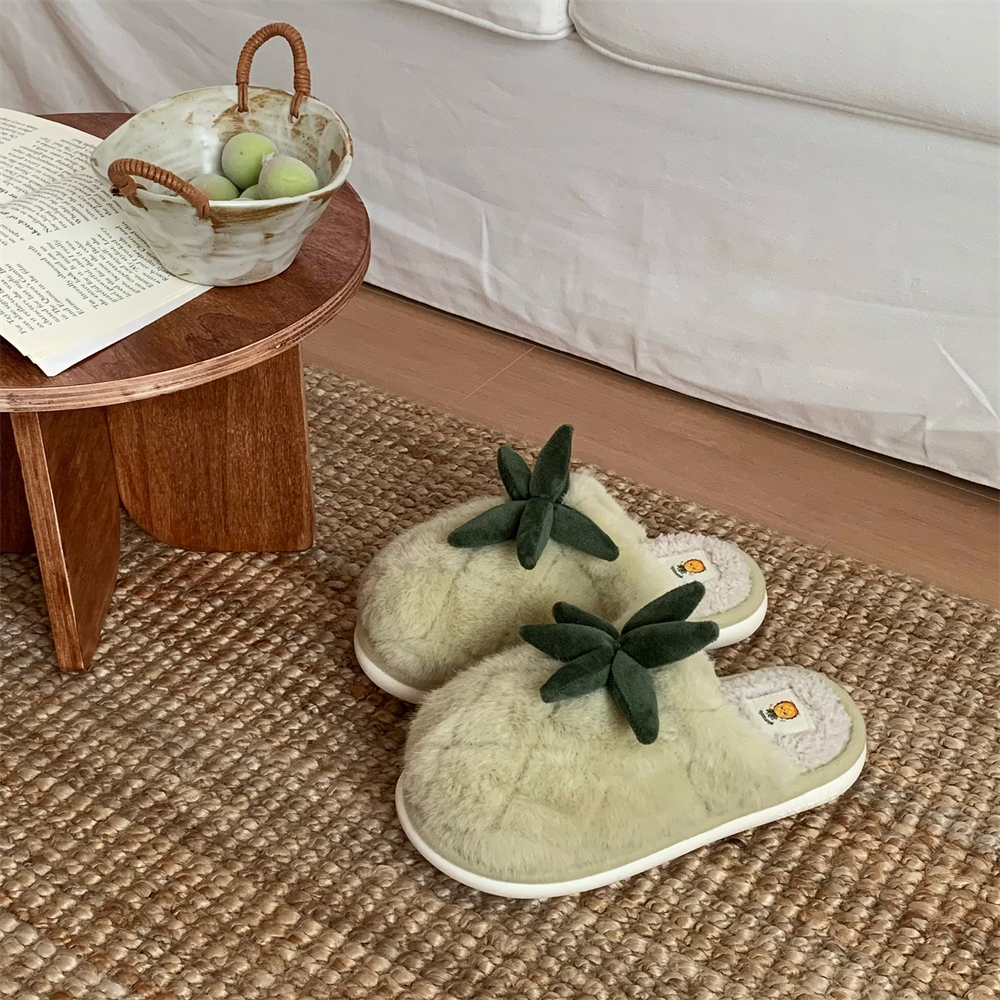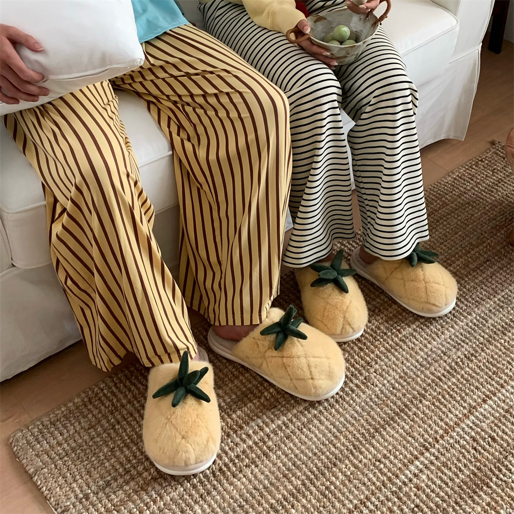 细细条 创意可爱菠萝情侣棉拖鞋男女卧室居家舒适保暖冬季毛毛鞋