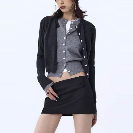 ourhour 羊毛混纺 撞色假两件层次感短款针织衫 女冬设计感小开衫