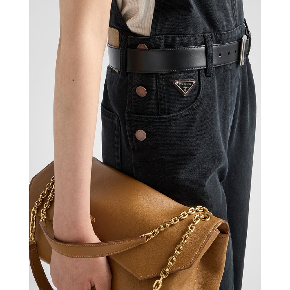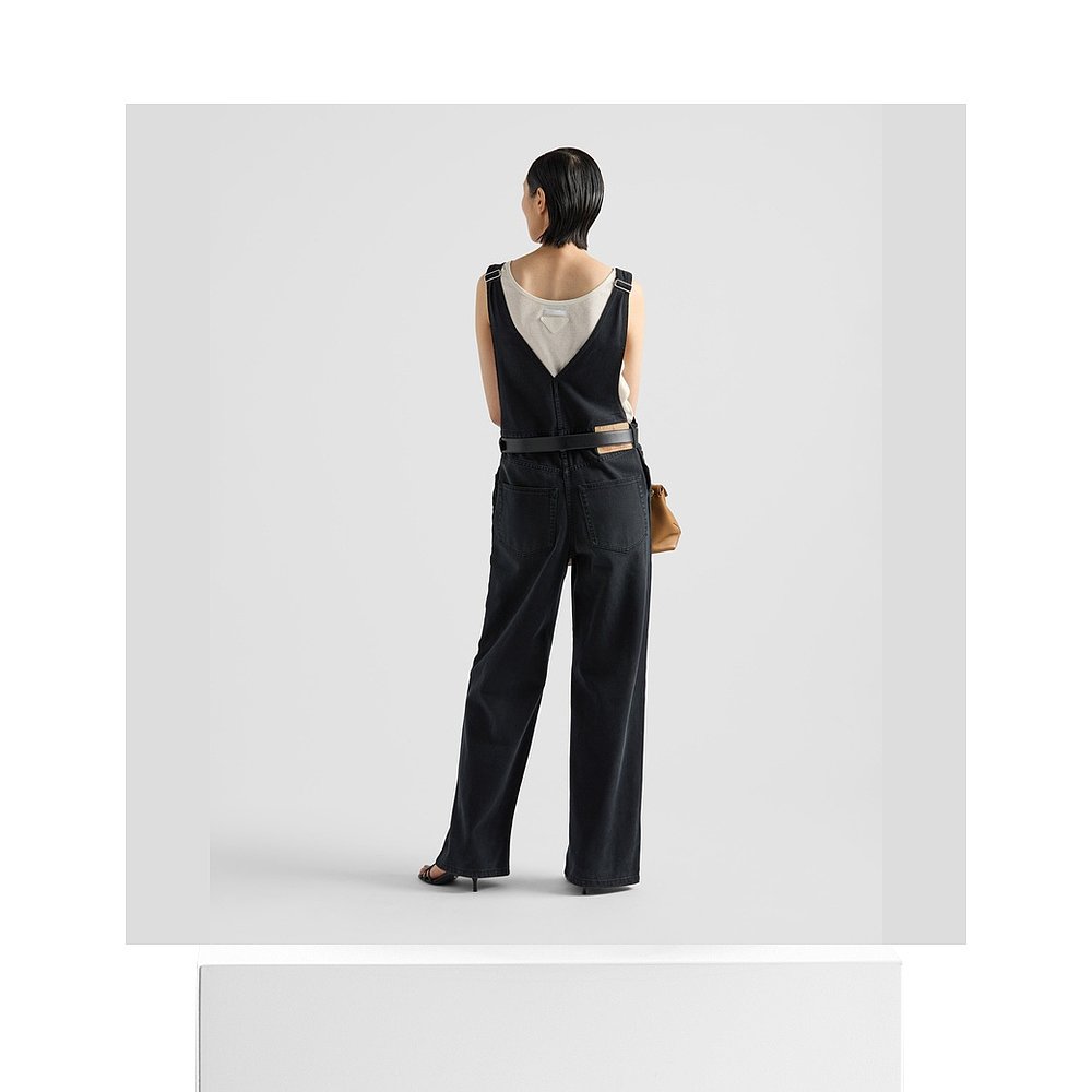 自营欧洲直邮Prada普拉达 女士黑色棉牛仔背带裤