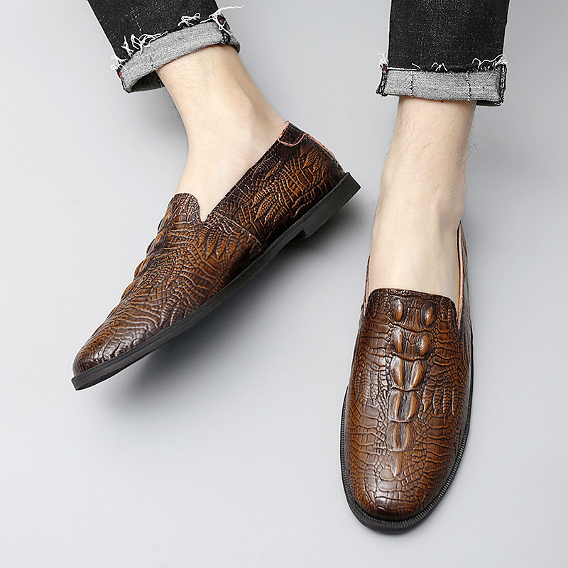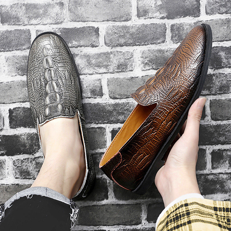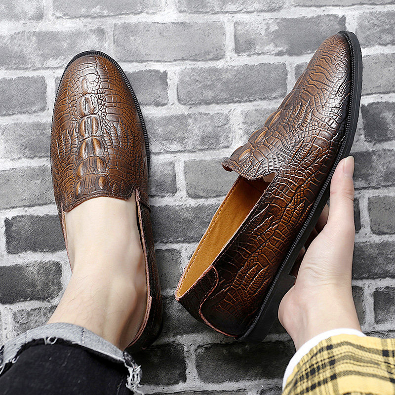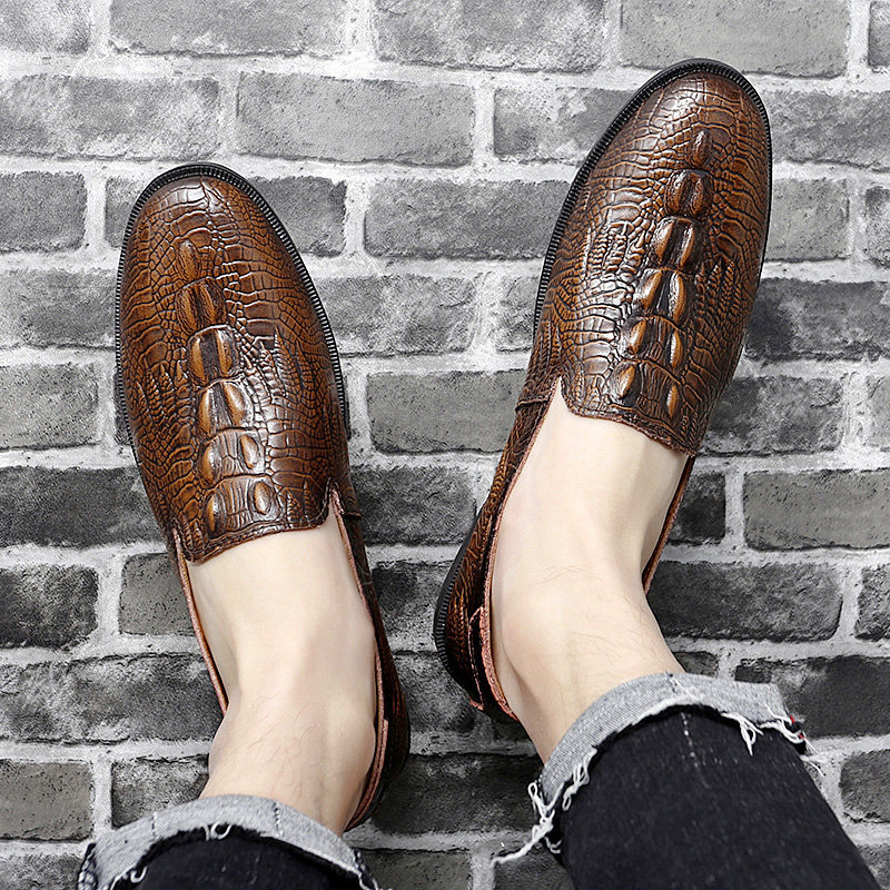 尖头休闲男皮鞋2025新款轻便软低真皮小码时尚潮流一脚蹬豆豆鞋男