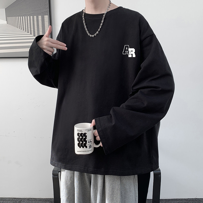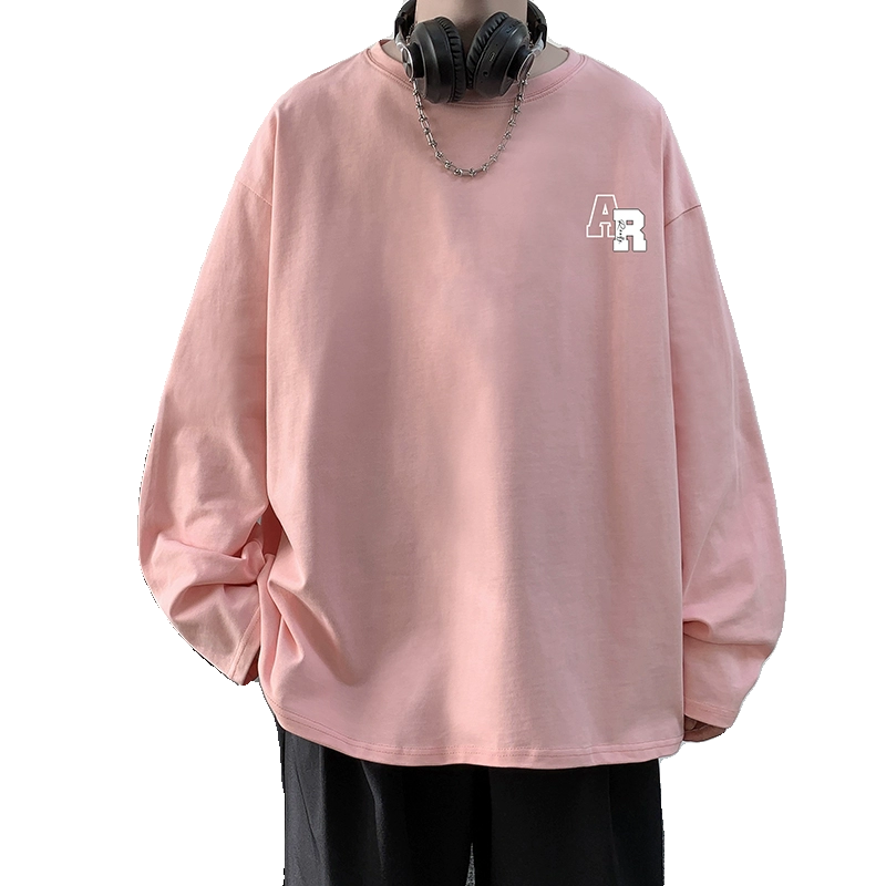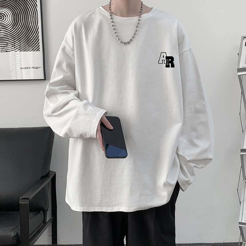 纯棉长袖t恤男2024秋季新款ins港风宽松大码潮流百搭打底衫上衣服